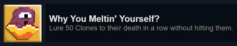 在任意正义地图中,连续击杀50个克隆体且不攻击它们。为确保安全,甚至不要为了移动而使用攻击技能。只需引诱它们自行跳入熔岩即可。50-Pei战斗总会生成足够数量的克隆体来完成该成就,因此在那里获取该成就最为简单。