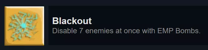 在任意Y地图中,一次性用EMP击晕7台机器。使用爱之机器人会简单很多,它的炸弹冷却时间虽然长得多,但击晕时间也明显更长。不过,如果你获得了爬行者炸弹升级,这个成就会变得更难,因为你扔出炸弹后无法确保它能击晕目标机器。建议在混合地图的右上角尝试完成这个成就,那里有很多机器。