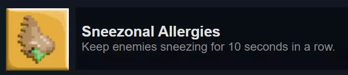 仅在【Fishy Wants Robot】中可行。喷嚏升级可在地图各处找到(其生成位置随机,因此无法指明具体地点),让你能够向远离敌人的方向冲刺并使其打喷嚏。无敌作弊码能让你轻松地通过直接冲刺穿过单个敌人来将其击晕,省去了寻找两个距离恰好为一次冲刺长度的敌人以同时将它们困住的麻烦。确保不要获取会让你的冲刺释放泡泡的升级,因为泡泡会伤害敌人,使保持敌人被击晕的状态变得更加困难。