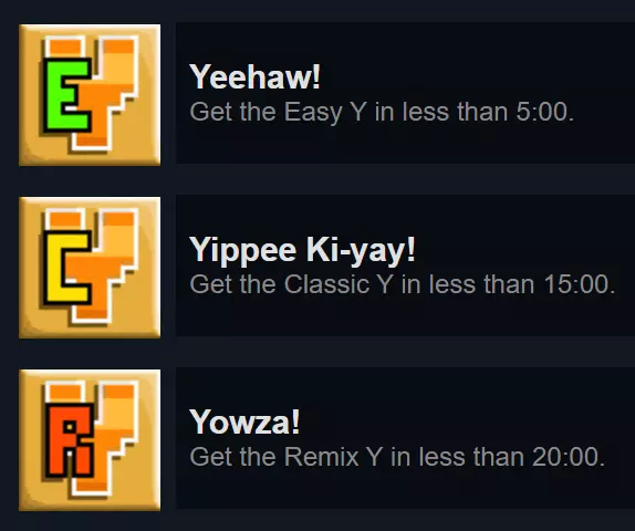 全成就完整指南,包括如何以及在何处实际获取它们。 规则0:作弊是允许的 后续所有解释所依据的最终规则是允许使用作弊。没有任何成就会阻止你使用游戏内作弊来获取它。事实上,其中一个成就实际上需要你作弊,所以开发者显然知道你有能力这么做。如果你发现自己难以满足某个成就的要求,直接激活作弊完全没有问题。你无法设置分数,但这并不重要,游戏仍然会记录你的时间。 类别1:不言自明