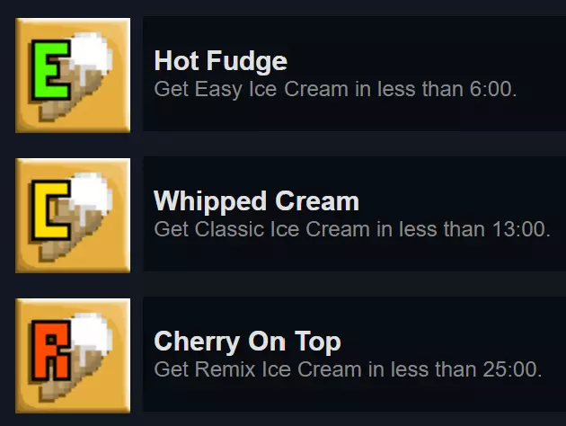 在【Remix Ice Cream】地图囤积1000个糖屑。糖屑是该地图独有的货币,用于解锁特定的门以及向冰淇淋小贩购买二段跳升级。若你囤积1000个糖屑,将获得一个成就。我建议为此使用作弊手段,这实在很麻烦。