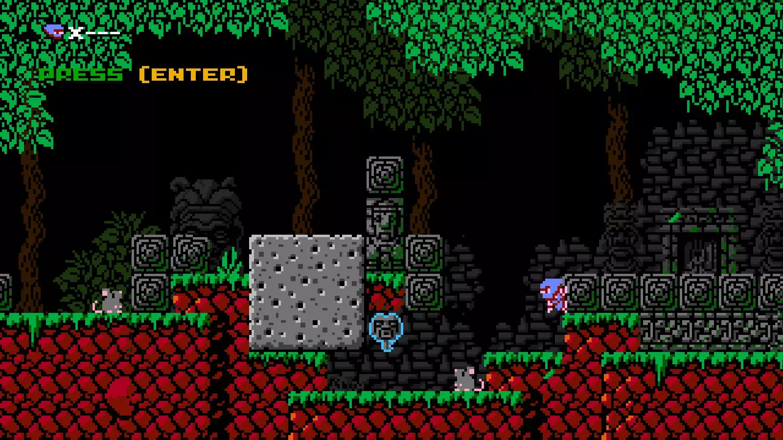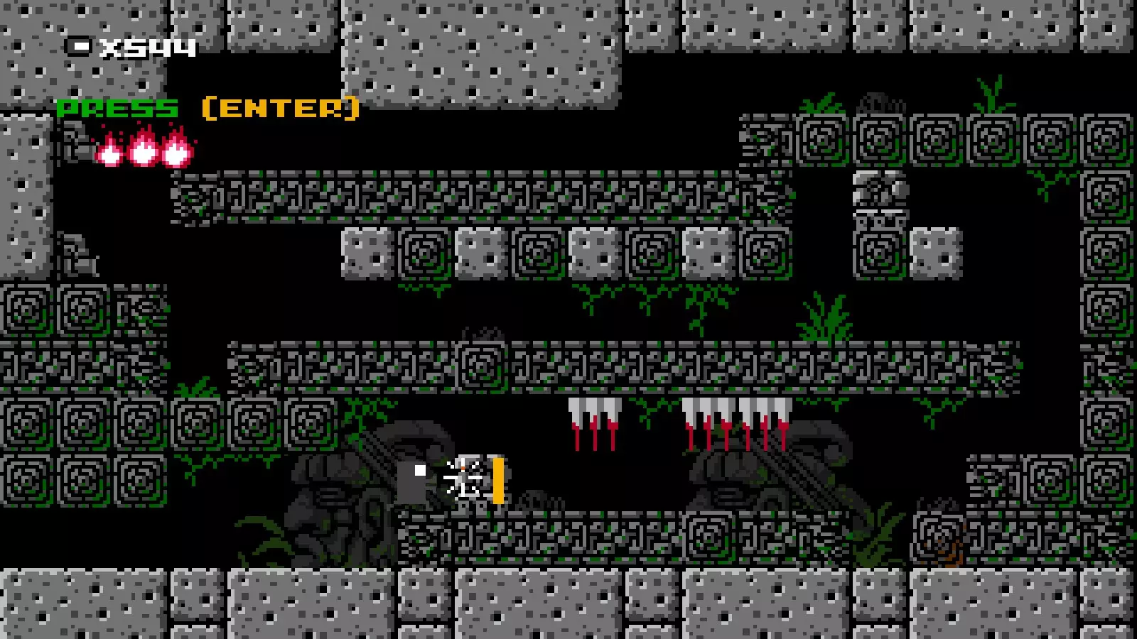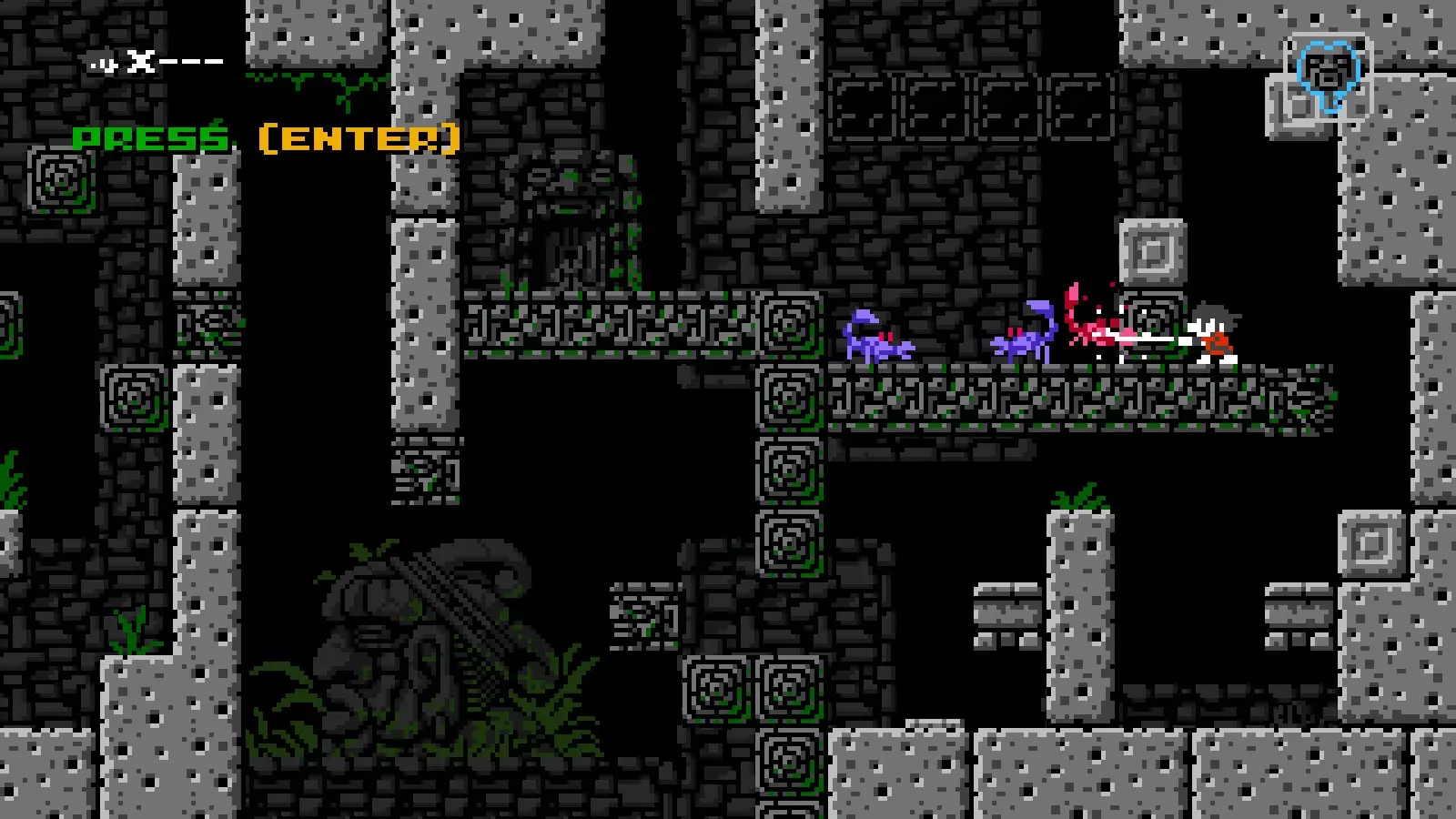 射击速度:快 射击限制:2 伤害:1 当【见证者】的投射物击中敌人、可破坏方块或其他活动精灵(例如巨石,但不包括飞镖陷阱)时,会对除【见证者】外的所有事物施加时间减缓效果。时间会减缓至大约一半速度,效果持续5“秒”。 速通计时器也会随之减缓。 在时间减缓期间击中带有代码的非活动方块会结束减缓效果。 近战攻击:无,但可以踩踏敌人。