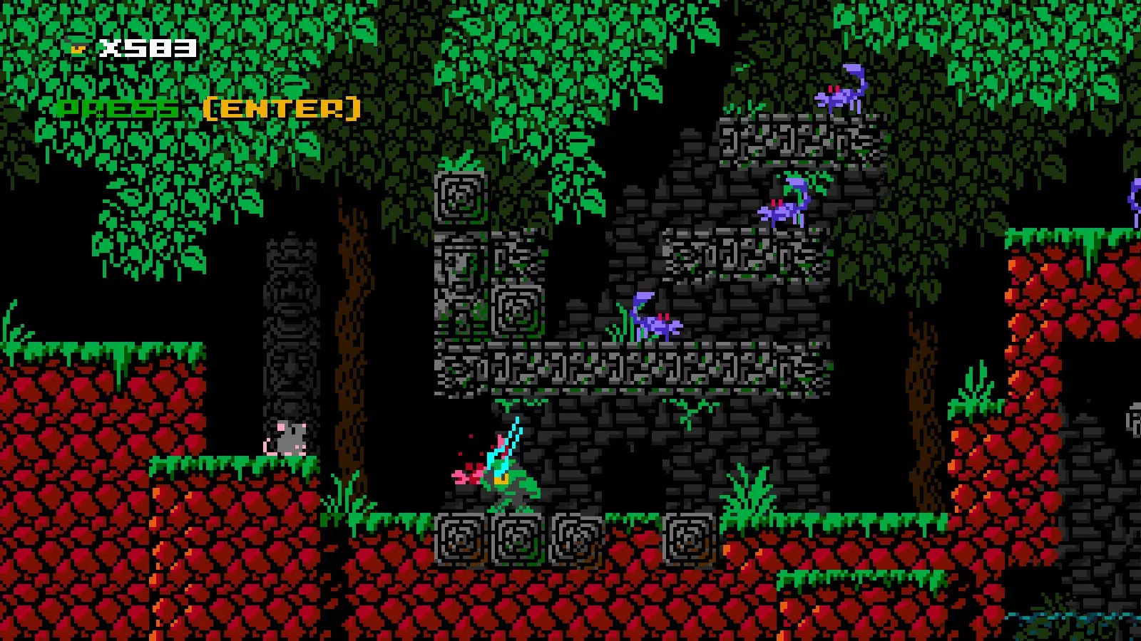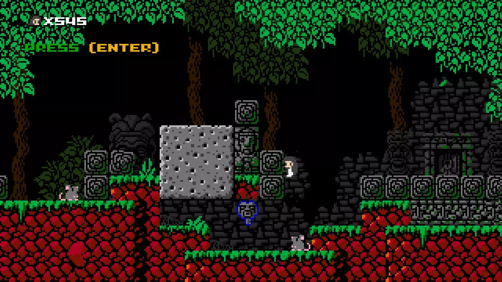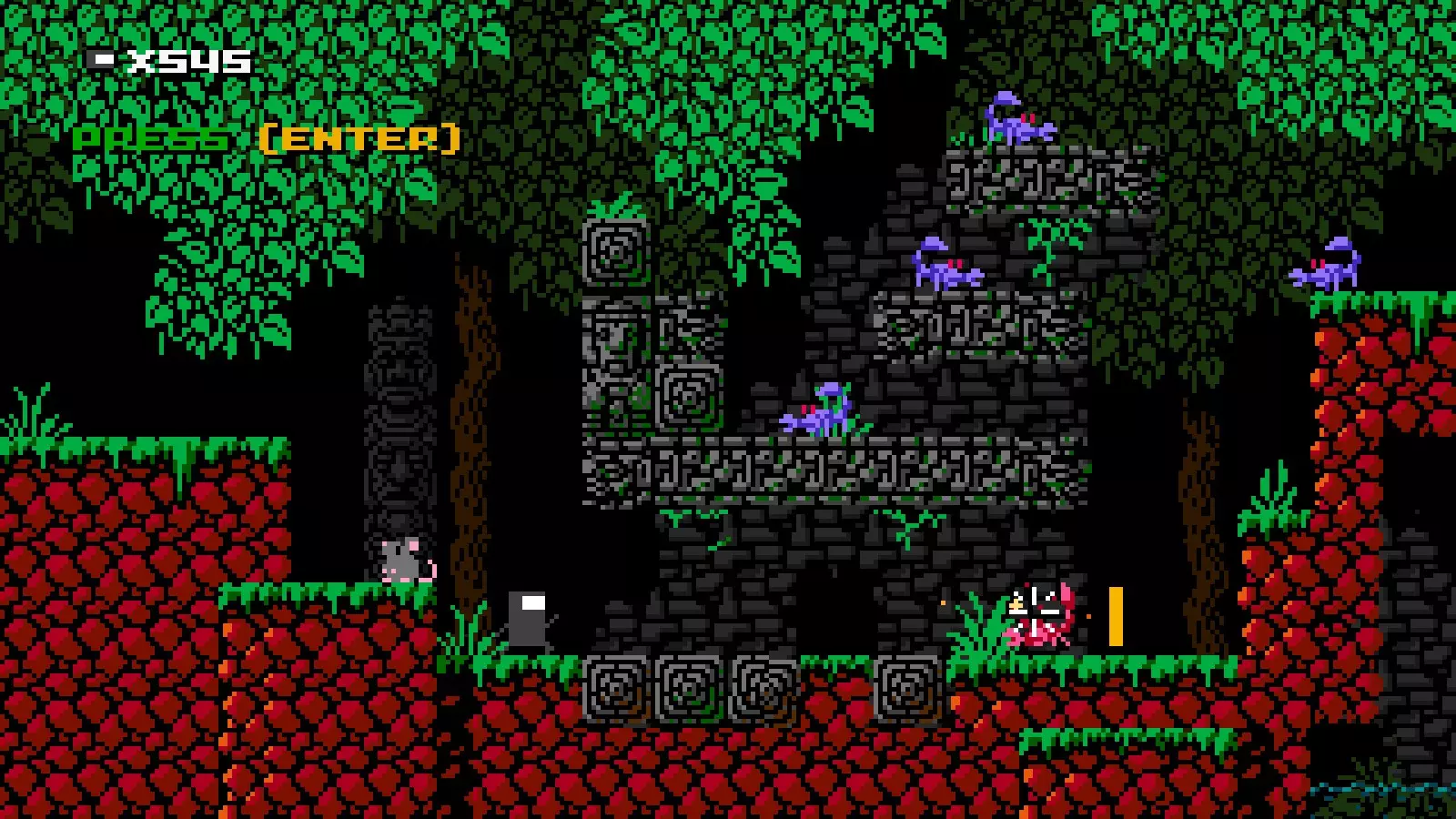 射击速度:快 射击限制:2 伤害:1 当【见证者】的投射物击中敌人、可破坏方块或其他活动精灵(例如巨石,但不包括飞镖陷阱)时,会对除【见证者】外的所有事物施加时间减缓效果。时间会减缓至大约一半速度,效果持续5“秒”。 速通计时器也会随之减缓。 在时间减缓期间击中带有代码的非活动方块会结束减缓效果。 近战攻击:无,但可以踩踏敌人。