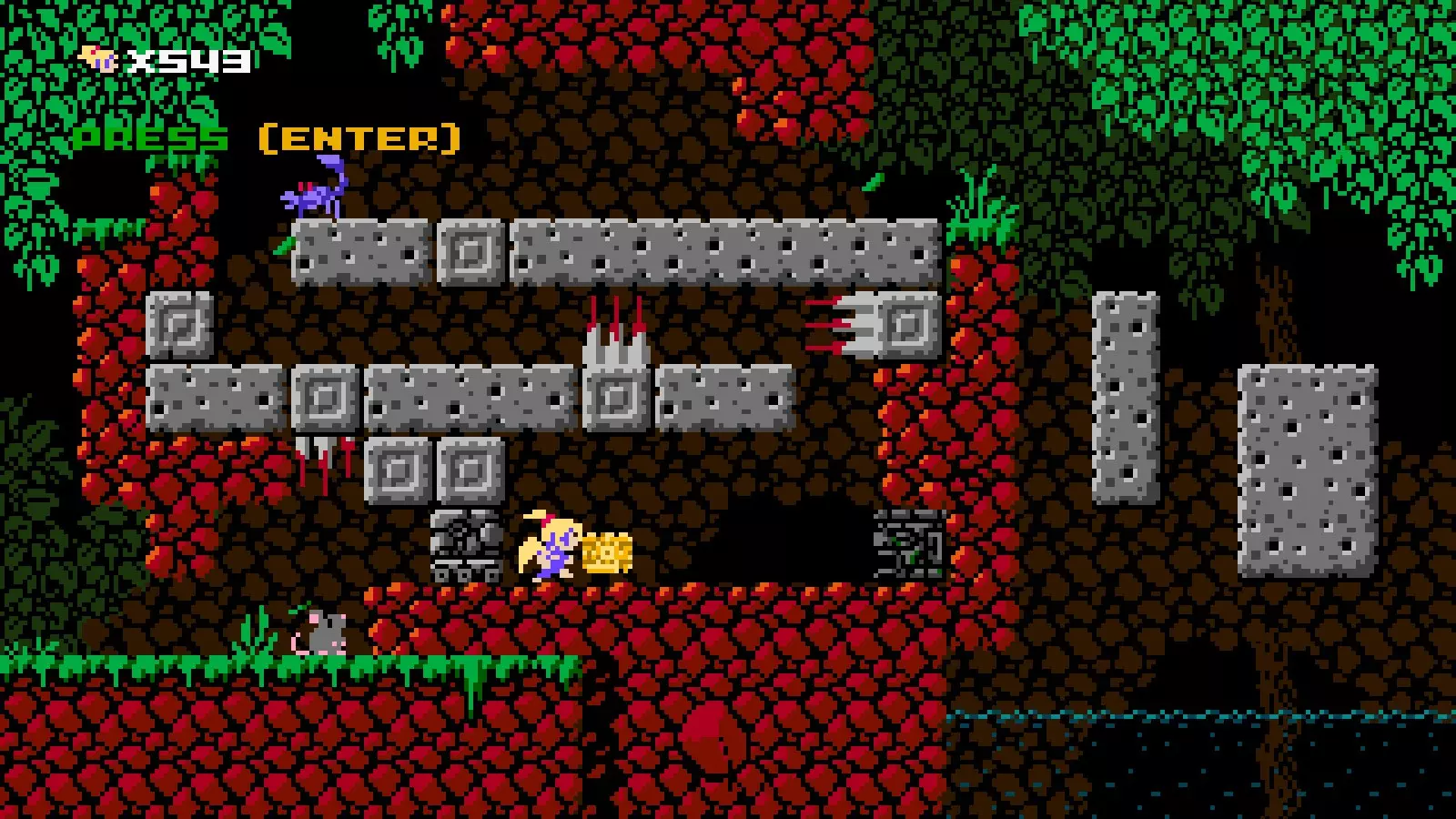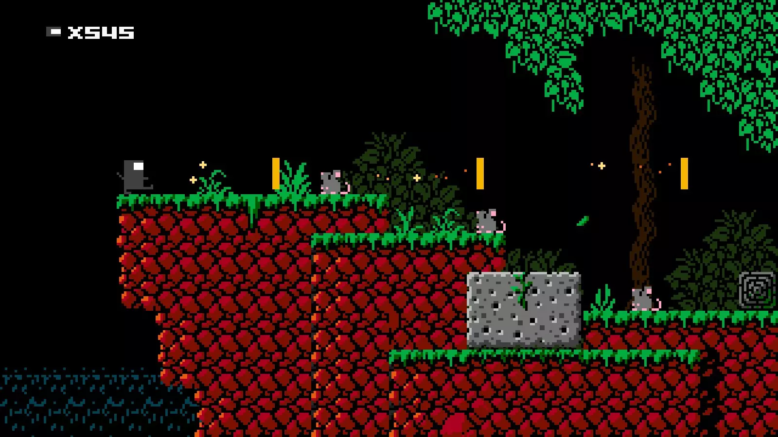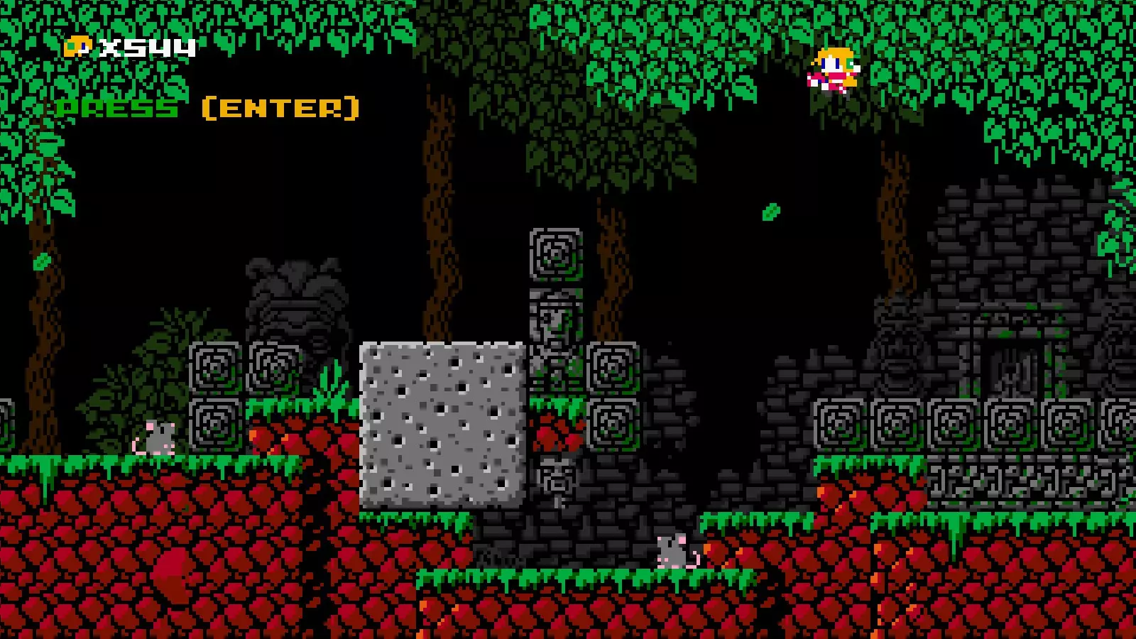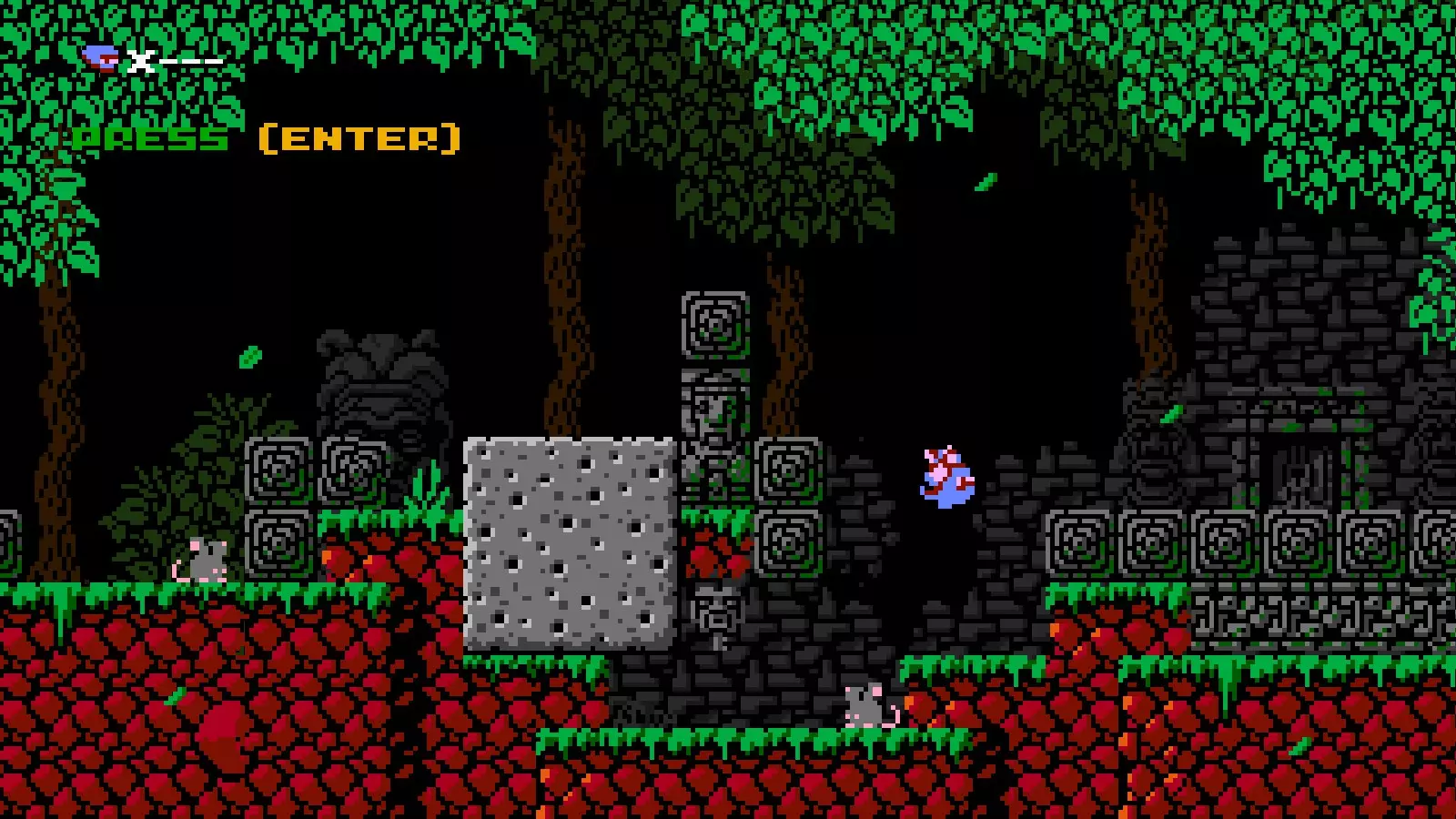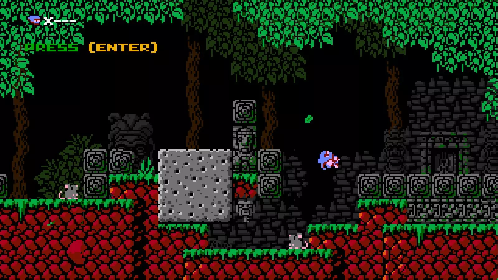 射击速度:中等 射击限制:2发 伤害:1 近战攻击:无 移动能力:拥有1格空中跳跃、1次1格墙壁吸附跳跃和一把伞。 在空中按住任意跳跃键会撑开伞,减缓下落速度。吸附墙壁时也会略微减缓下落速度。