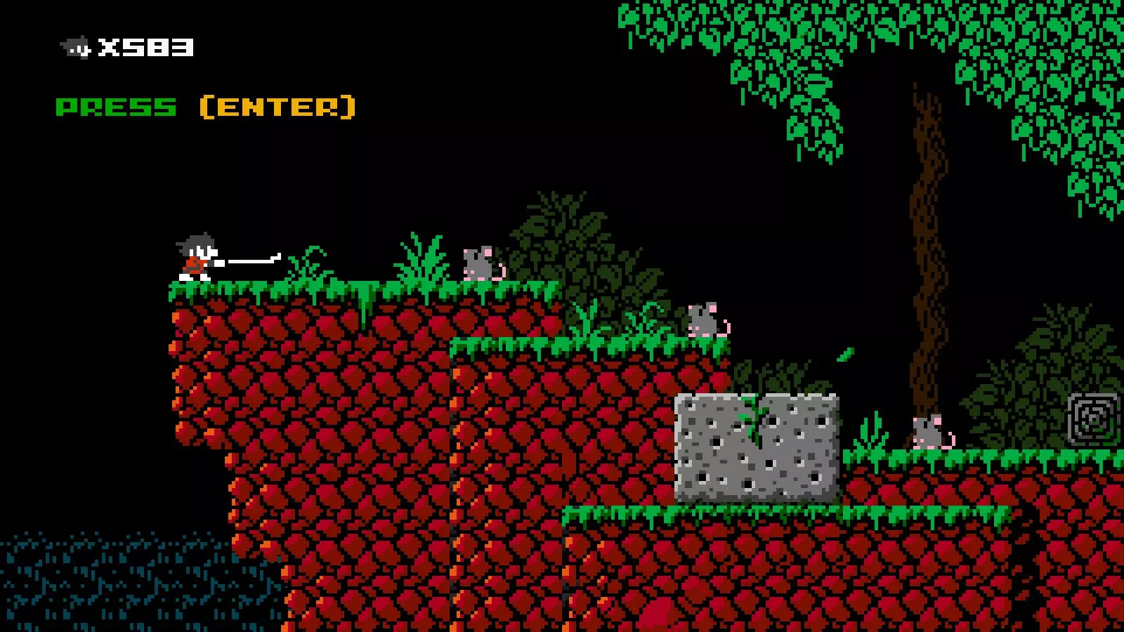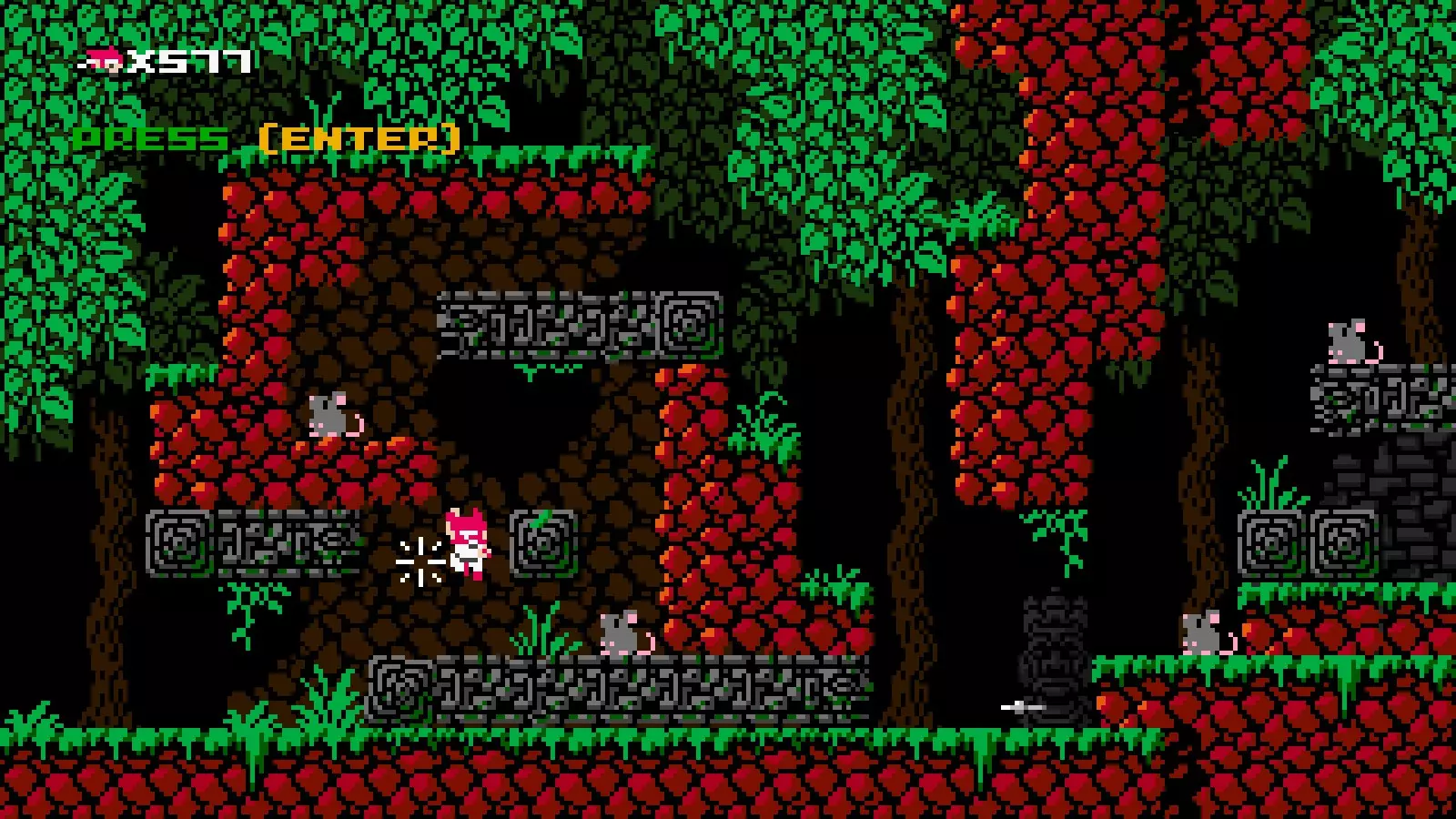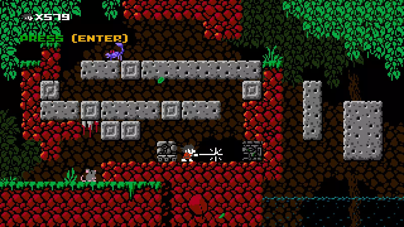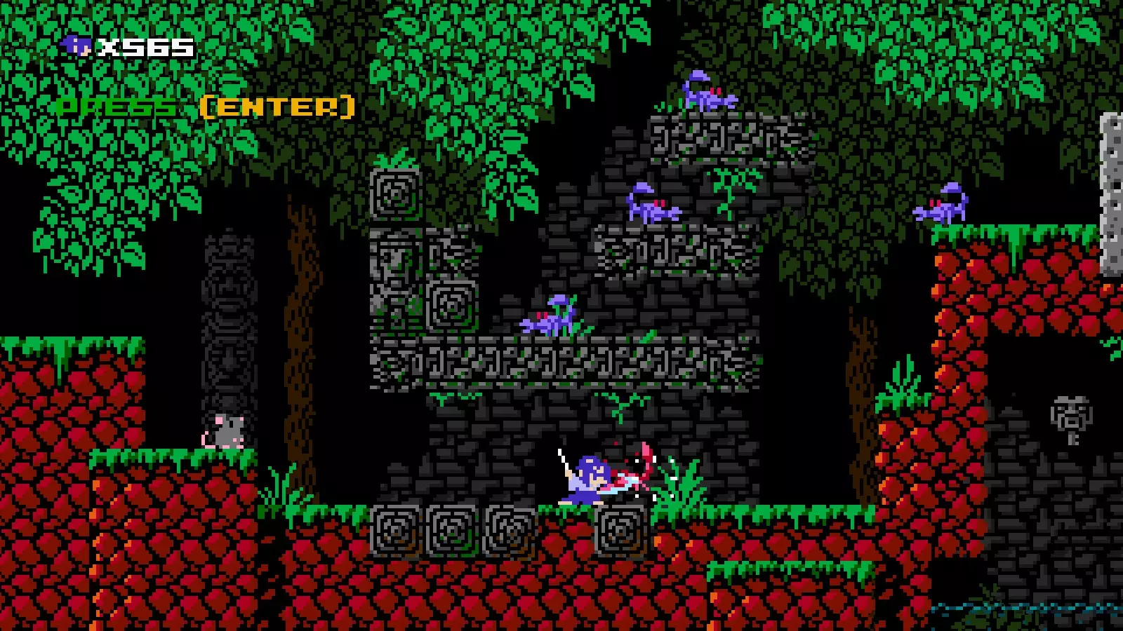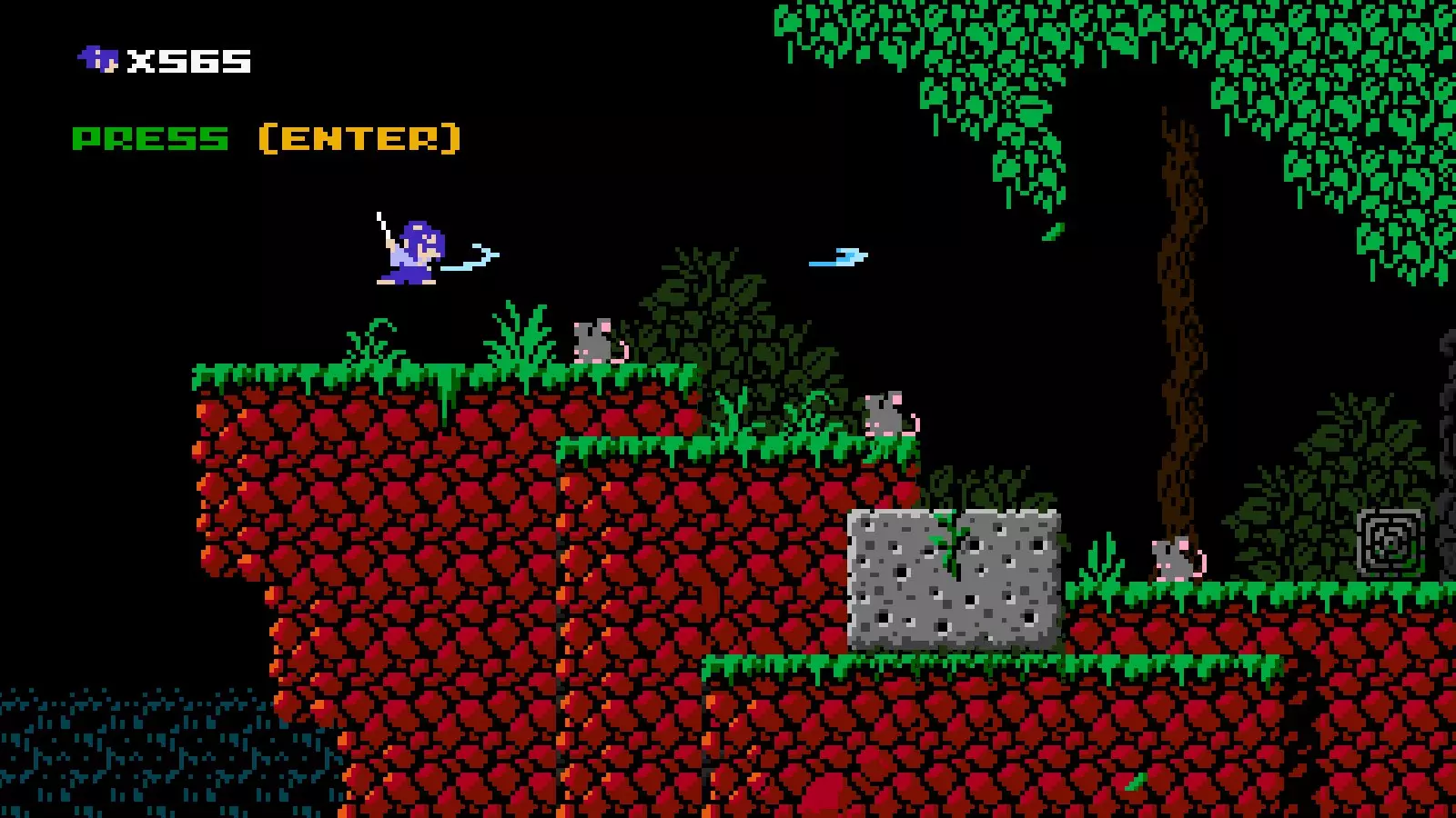 说明:很难拍到这个攻击的清晰截图,尤其是在它击杀敌人或摧毁飞镖的时候,非常抱歉! 伤害:3 可穿透一格墙壁攻击敌人和物体。 可抵消投射物并破坏方块。 移动时可自由使用。 几乎无冷却时间。 机动性:一格空中跳跃和墙壁跳跃。快速奔跑。 忍者阿班拥有一格空中跳跃,但仅能在短跳期间使用。