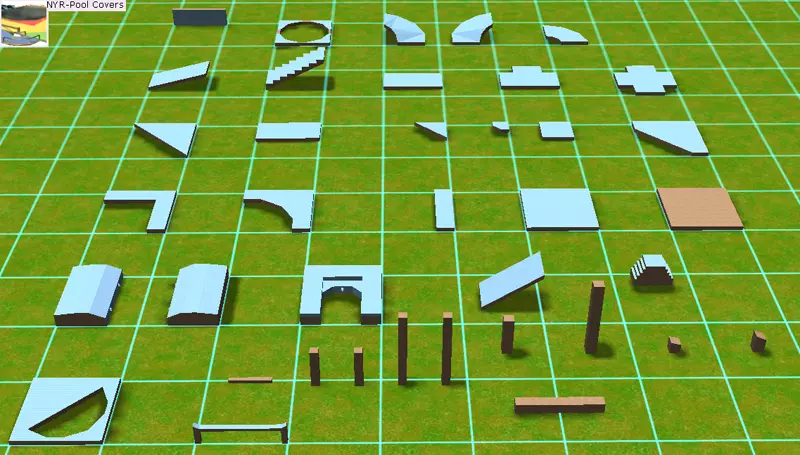 NYR泳池覆盖物 厌倦了标准的泳池地面?此包包含所有泳池地面和泳池路径覆盖物,还有一套可重新着色的覆盖物。