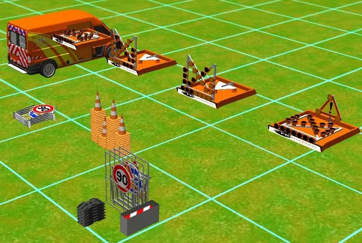车辆巡逻 此包包含欧式道路施工及其他CS素材。内含货车、可安装在货车上的电子指示牌、锥形路标、路障及其他物品。