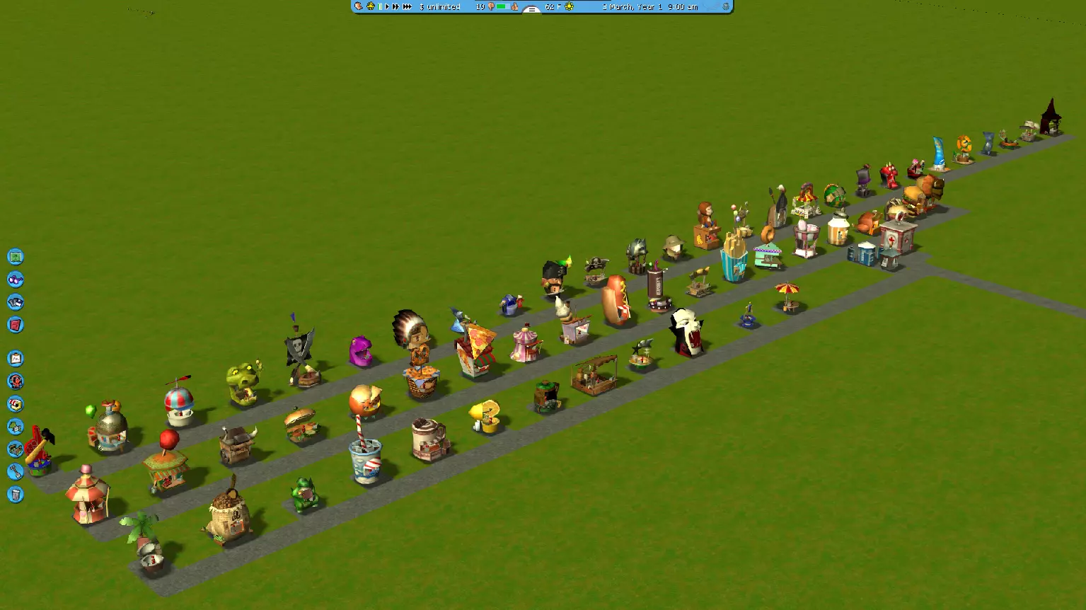 这是我在《过山车大亨3》中使用的自定义景物的完整列表。 如何安装自定义景物 对于仍然不知道如何安装的玩家,我将说明安装方法。 1. 从互联网上下载你选择的自定义景物,无论是你自己找到的还是通过相关途径获取的下载资源。 2. 下载后,文件通常为.zip或.rar格式。对于.如果里面有ReadMe文件,请务必阅读!这是有原因的。像“Doughnut's James Hunt Track”这类模组,其粒子效果可能需要你进行一些额外操作才能正确安装。对于.rar文件,你需要获取WinRAR的未注册版本并下载(或使用其他解压缩程序)。我个人使用7zip,它非常好用,而且完全免费,不会烦扰你购买。然后,你选择文件并用WinRAR打开,接着将其解压到任意位置即可,位置无关紧要。 3. 现在,关于自定义内容(CS)的放置位置,请按照我的指示操作。路径如下: 对于64位电脑用户:C:/ProgramFiles(x86)/Steam/SteamApps/common/Roller Coaster Tycoon 3 Gold/Style/Themed。 对于32位电脑用户,只需进入ProgramFiles文件夹。如果你不确定自己的系统类型,可以查看这两个文件夹,其中有Steam文件夹的那个就是你需要使用的。 对于非通过Steam购买《过山车大亨3》的用户,无需进入Steam文件夹,而是进入“Atari”文件夹,然后选择“Roller Coaster Tycoon 3”,之后的步骤与Steam版相同。这基本上就是在《过山车大亨3》中下载自定义内容的方法。接下来,是自定义内容列表! ATH 走道套装 这套自定义内容包含了用于过山车的走道。这里没有太多需要说明的。它包含多种不同的走道,可环绕过山车设置。此外,还包含非常基础的支架。