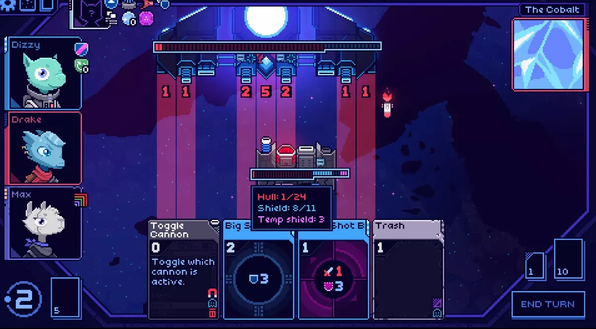德雷克是必不可少的,因为你绝对需要她的卡牌【来自地狱之心】(升级到B型并非必需,但有助于确保你始终保持最大伤害)。她的卡牌【掠夺与劫掠】对于提升最大船体值也极为有用。 迪兹同样重要,因为如果没有强大的护盾,你很容易被任何随机攻击瞬间消灭。神器【护盾记忆】和【跨接电缆】在你建立护盾的最初几个回合中都非常宝贵,能保障你的安全。【护盾爆发】、【再生器】和【曲速精通】如果能找到,对防御也有帮助,但并非该流派的核心必备。