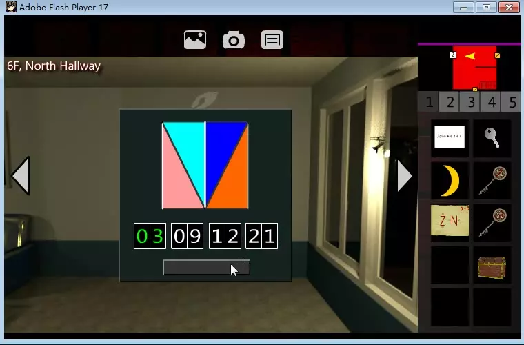 解开这个谜题后,应该会出现一道凹槽。记住提示!(你可以给它拍张照) 【4楼,西走廊】 还记得我们一开始拿到的月亮形状的方块吗? 把月亮放到那个谜题上。那里有一个6位数字输入框。 还记得2楼的提示吗? 0↓↓↓↓0 ↓是什么意思?我们往下看凹槽,会看到4个数字。我们刚刚解开了它。 没错!我们在这4个数字前面放一个“0”,后面再放一个“0”,组成一个6位数。 例如:我之前谜题的答案是7742。那么这个谜题的密码应该是“077420”。 从凹槽中获得【5号钥匙】。 【4楼,405房间】 点击床上闪闪发光的物品。你找到了一把【青铜钥匙】。 用这把钥匙打开窗户。穿过窗户下楼。【3F,东走廊】 打开带有蓝色“3”字的门并进入。穿过浴室的窗户。 【3F,302房间】 剧情过后,返回【3F,东走廊】,使用“青铜钥匙”打开窗户。 【3F,305房间】 穿过浴室的窗户。 【3F,引擎室】 点击带有8个方块(1个白色和7个黑色)的电脑屏幕。 这里是另一个“最困难的谜题”——“手印谜题”。大家必须注意,3F除引擎室外的每个房间墙上都有红色/灰色手印。 每个手印的位置,更具体地说,离地面的距离各不相同。 屏幕上的方块与3F的房间之间存在关联。例如,右侧的方块代表【3F,304房间】,底部的方块代表【3F,305房间】。你可以使用地图来帮助理解这种对应关系。 你必须根据手印离地面的距离,按顺序点击与房间位置相同的方块。有两种序列:从上到下或从下到上。这取决于给出的第一个房间中的手印是上方的还是下方的。 提示: 你可以使用地图左侧的小图片来帮助整理房间。点击已访问的房间可查看小图片。如果图片太小,你可以拍摄每个手印的位置来进行整理。有件事必须提醒你,现在你不能去301房间、303房间和西侧走廊。 地图上的旗帜标记可以帮助你进行标记。点击旗帜,然后在地图上的任意位置点击,就能在该位置放置一个旗帜标记。再次点击旗帜标记即可清除该标记。 如果密码正确,屏幕就会发生变化。点击【转动立方体】字样。 第二部分到此结束。从现在开始不会再有极难的谜题了,加油吧! 苏醒结局路线:第三部分 剧情结束后请打开你的地图。 你可能会发现一些奇怪的事情:3楼和4楼的地图颠倒了! 实际上,这就是【方块酒店】的秘密:3楼和4楼旋转了180度,并且开启了一些新的路线。 现在请前往【3楼,东侧走廊】。旋转前,下楼的路是堵塞的,现在已经畅通了。 【2楼,淋浴室】 调查右侧淋浴室可获得【金钥匙】。 使用金钥匙打开在【1楼,东走廊】获得的宝箱。 宝箱内有一本【日记】。 打开日记并仔细阅读。从日记中我们可以推断出【3楼,302房间】的床底有一枚金币。 【1楼,更衣室】 剧情过后,不要回头!记住右侧墙上的图案。 【4楼,405房间】 前往浴室,那里有一个开关谜题。 按顺序激活和关闭部分开关,使其图案与【1楼,更衣室】的图案一致。此时更衣室的电力已被切断。 【1楼,更衣室】 调查右侧房间可获得【7号钥匙】。调查左侧房间并拍摄报纸照片。 【3F,302房间】 点击左侧床上的枕头,获得【金币】。 【5F,北走廊】 使用【7号钥匙】打开标有紫色“7”的门。 解决该门右侧的【指南针谜题】。根据你刚刚拍摄的报纸上的提示,点击指南针上的“NEWS”(N=北;E=东;W=西;S=南)。 【5F,办公室】 现在来玩卡牌游戏。 这个卡牌游戏与二十一点、德州扑克、百家乐等赌场规则有很大不同。在这个卡牌游戏中,先出完所有牌的玩家获胜。 你可以出单张牌或一对牌来开始一轮。另一位玩家需要出相同花色的牌,但该花色的点数必须大于前一张。一局游戏会持续到有玩家选择过牌为止。如果玩家没有更大的牌型可以打出,就必须选择过牌。 你可以尝试挑战电脑:) 显然,你是无法击败电脑的。 因为当前游戏模式是【困难】。 点击左侧的齿轮图标,将游戏模式切换为【简单】。 首先你打出一张【3】。电脑会打出一张【8】。 然后打出一张【9】。电脑会打出一张【Q】。 打出一张【K】。电脑会选择过牌。 现在打出所有的对子,最后打出单张【9】。 你赢得了游戏,并获得密码【1860】。 然后重置魔方。 【二楼,西走廊】 在输入框中输入【1860】以解锁房门。 【二楼,餐厅】 获取桌上的箱子。使用金币打开它,从中得到【9号钥匙】。再次转动立方体。 [5楼,北走廊] 打开带有靛蓝色“9”的门。 恭喜,这就是清醒结局的终点!