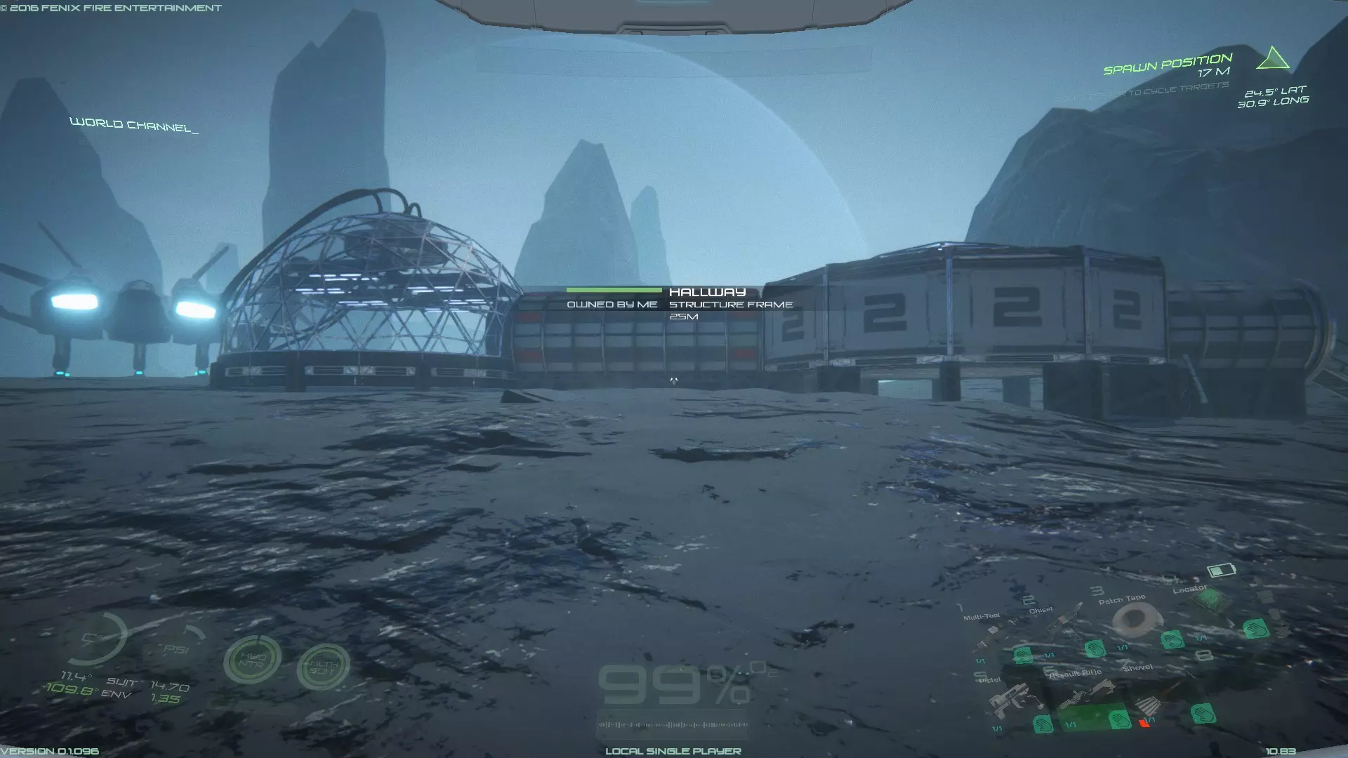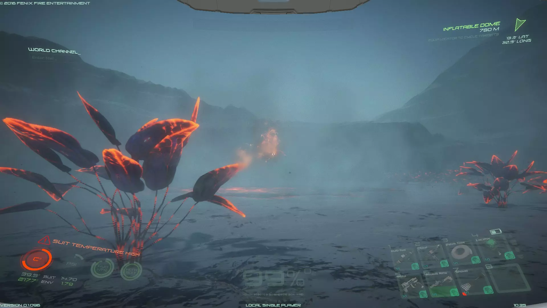关于探索阿兹尔的一些提示和建议 前往阿兹尔的准备工作 JaYzN的《阿兹尔指南》中有很多不错的提示,非常值得一看。 前往阿兹尔务必做好准备。与阿兹尔相比,普罗透斯2号星球相当容易。阿兹尔环境恶劣、荒凉且大部分地区贫瘠。开发者是否会添加一些额外功能来改善阿兹尔的贫瘠状况,还有待观察。 背包中建议携带的最低补给:充气穹顶、太阳能电池板、额外的水、额外的食物。将背包所有格子装满你认为需要或有用的物品。 建议携带的最低资源和制造物品:足够建造以下物品——锻造炉、2个仓库、实验室,以及一辆载具(GAV或漫游者)。充气穹顶能在早期阶段保障你的生存,直到你建成栖息地,并安装好制氧机、气候控制器和水回收装置。载具将帮助你探索阿兹尔(即使在夜间)并收集资源。 由于飞船的储物容量很大,用原材料和制造物品填满所有剩余的槽位。如果规划得当,你将拥有充足的物资来在阿兹尔的恶劣环境中生存,并为建造一个合适的基地打下坚实基础。 到目前为止,我在阿兹尔上发现的唯一气体是氮气。除非开发者添加其他气体间歇泉,否则你将无法获得用于制造水或塑料的氢原料。因此,务必建造水回收装置,并携带额外的塑料以及需要塑料作为原料的必要制造物品。 选址,选址,选址 阿兹尔星球的大部分地区荒凉贫瘠,缺乏资源。低地的大部分区域同样荒芜且资源匮乏。目前我在低地发现的唯一例外是熔岩叶(可食用)、一些氮气间歇泉和黑曜石矿石(用途未知)。 在较高海拔处有一个资源丰富的高原。我在那里发现了铝、碳、铜、钻石、铁、锂、镁、镍、钚、钛、钨。但没有气体间歇泉。