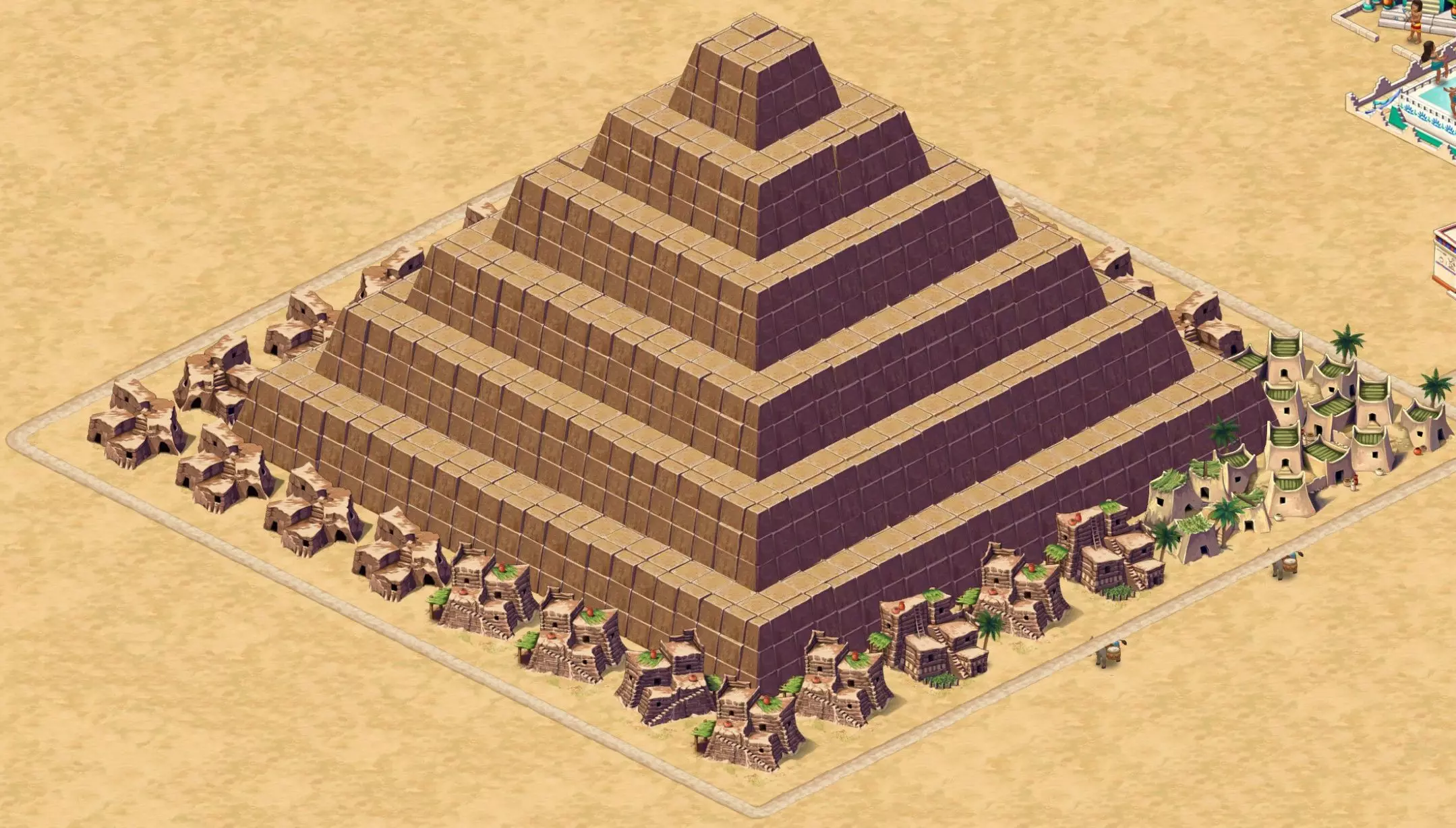 金字塔周围必须有完整的方形房屋边界(不要忘记添加建造平台所在的位置,因为它在建造完成后会消失)。