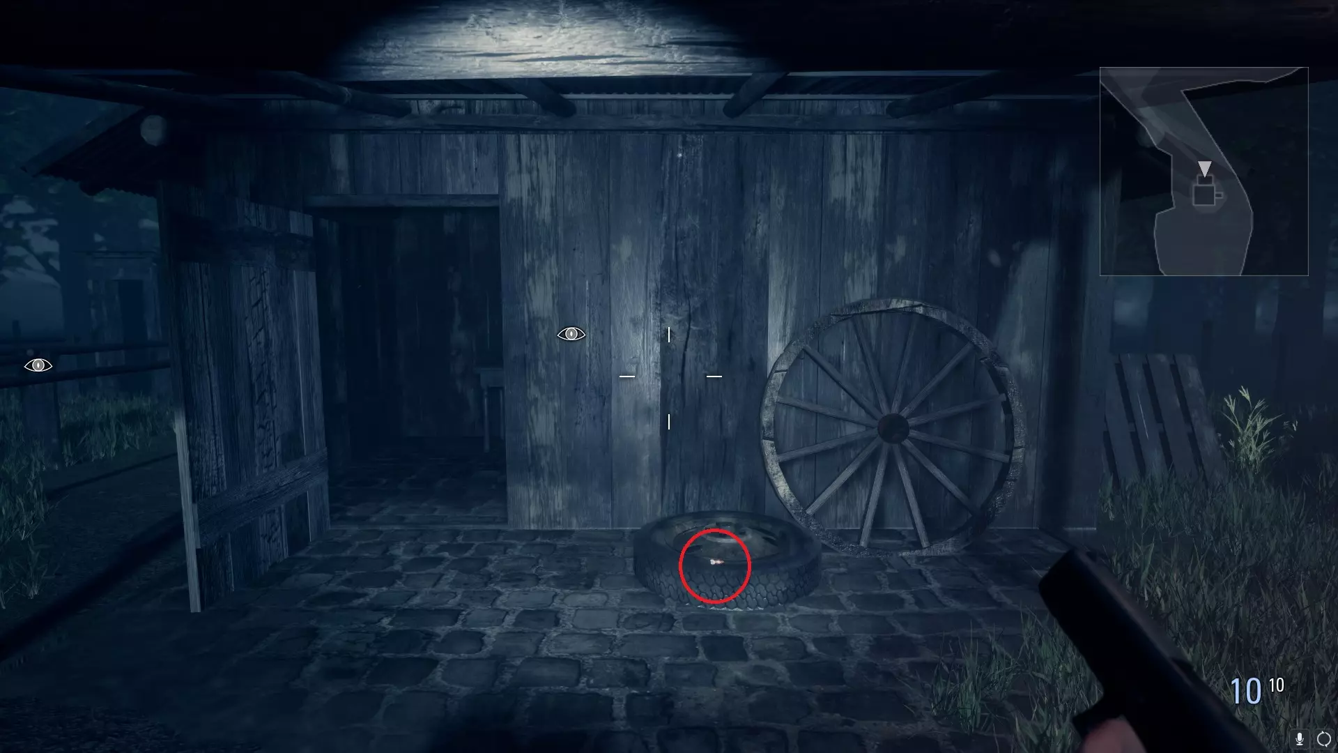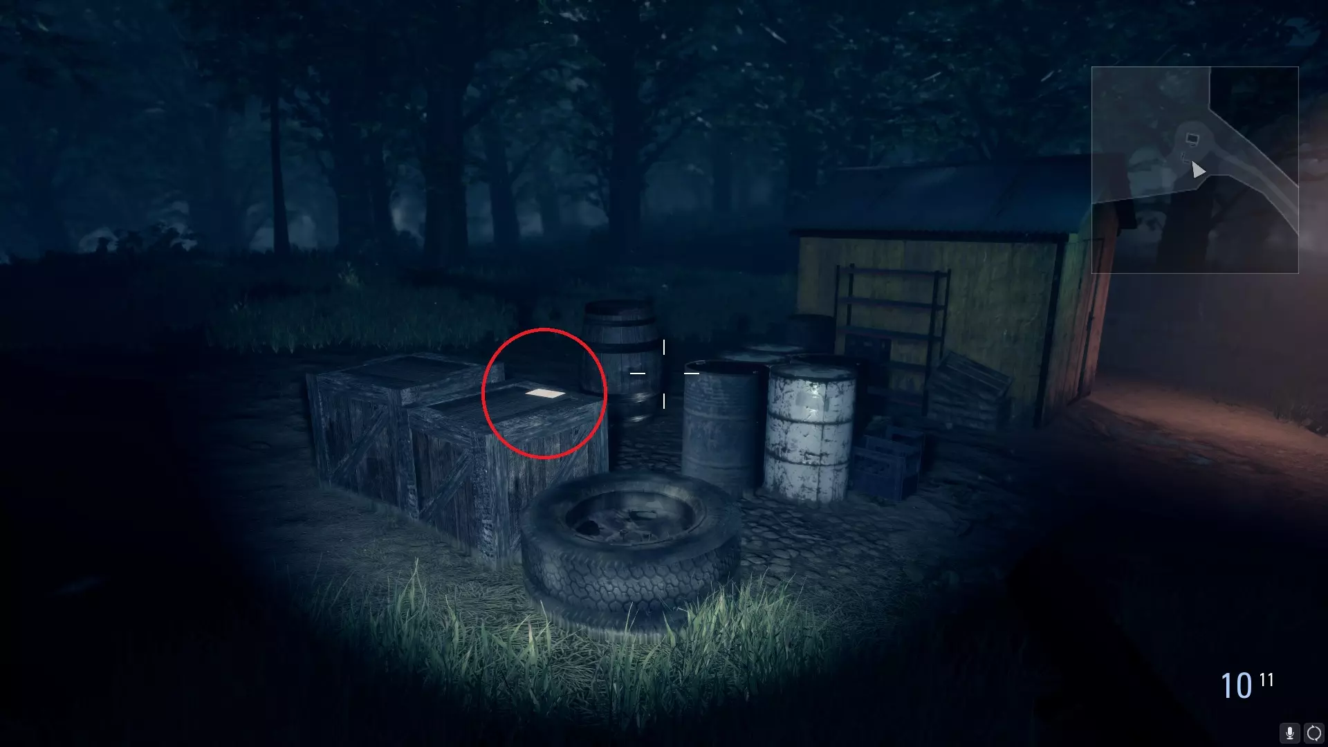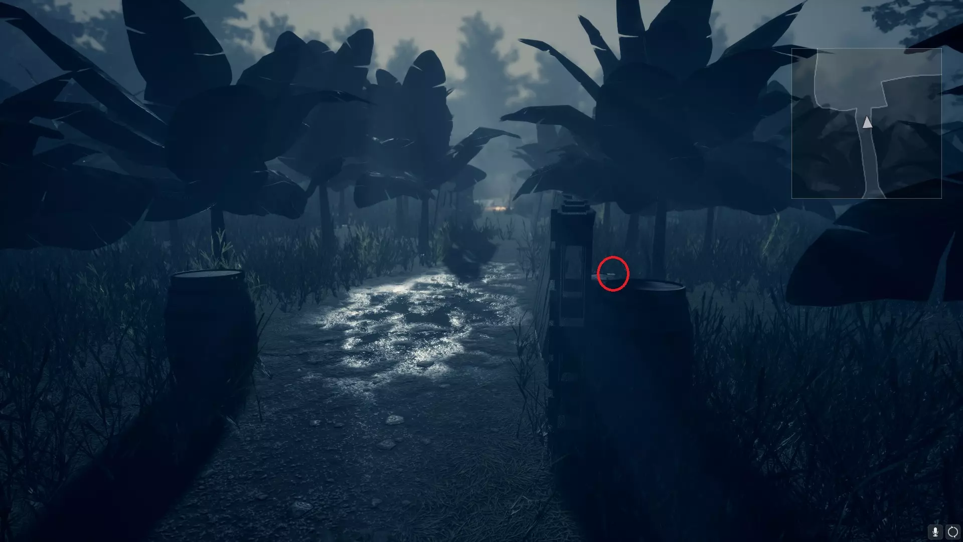 3) 在你从工具小屋救出薇拉后。在一辆手推车下方,位于通往发电站和种植园的道路之间: