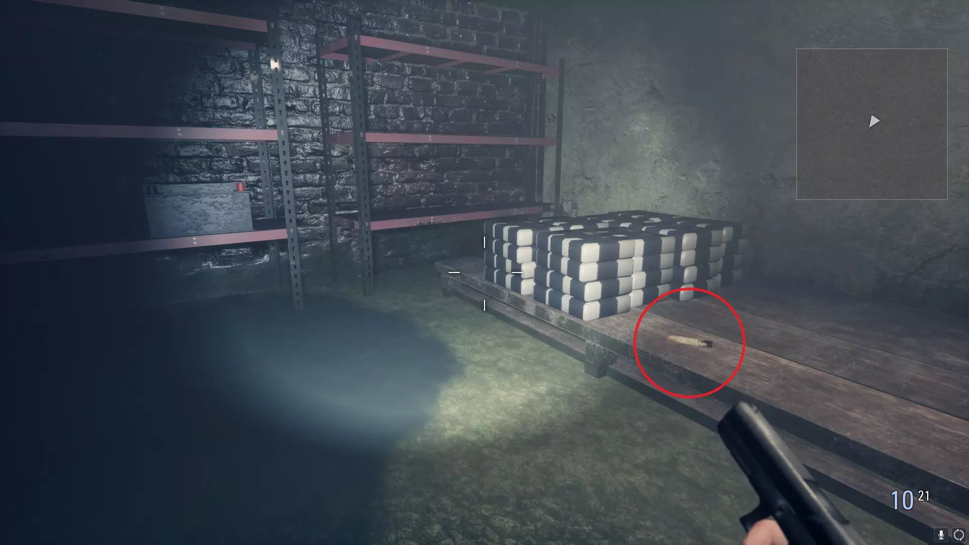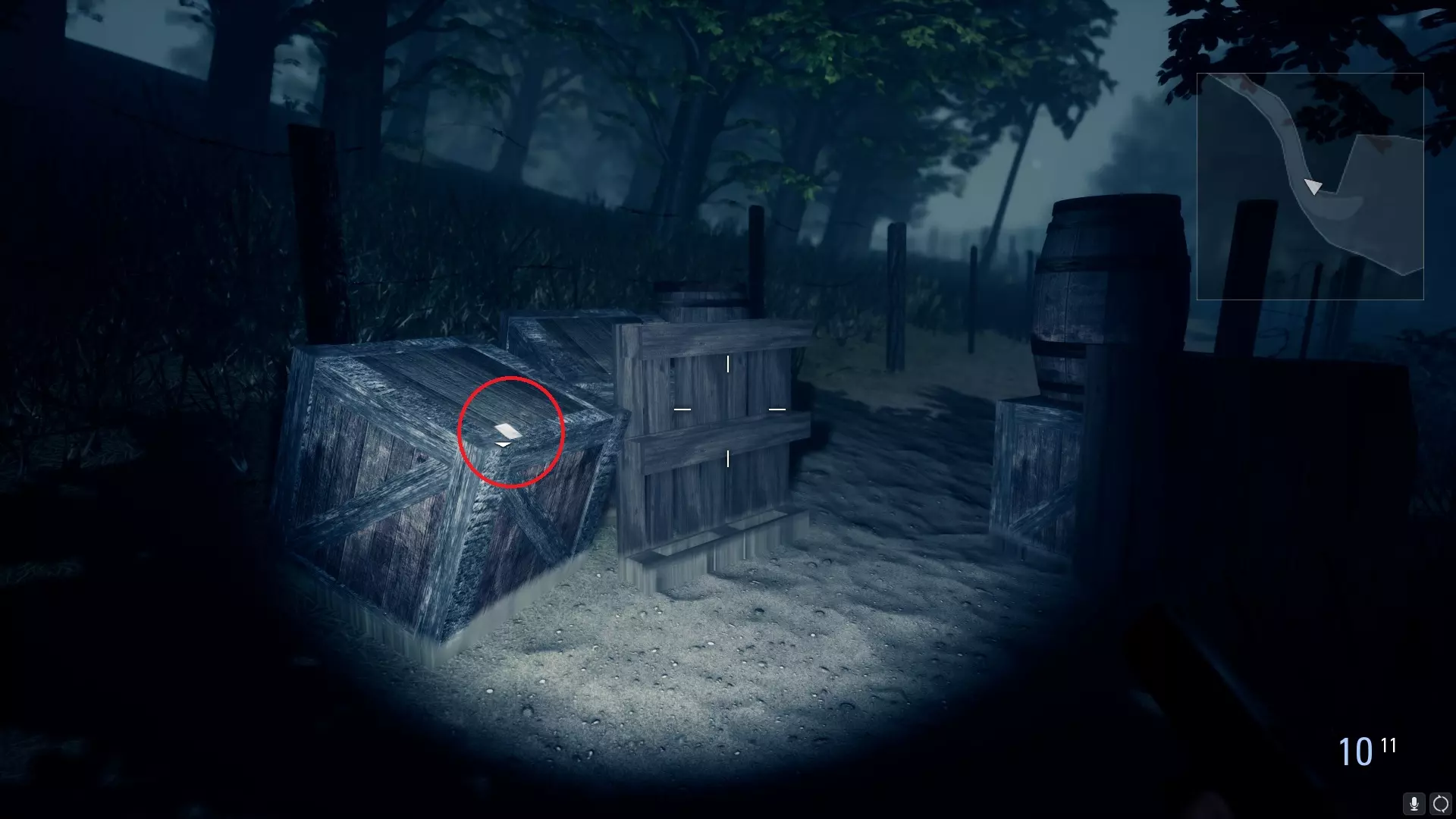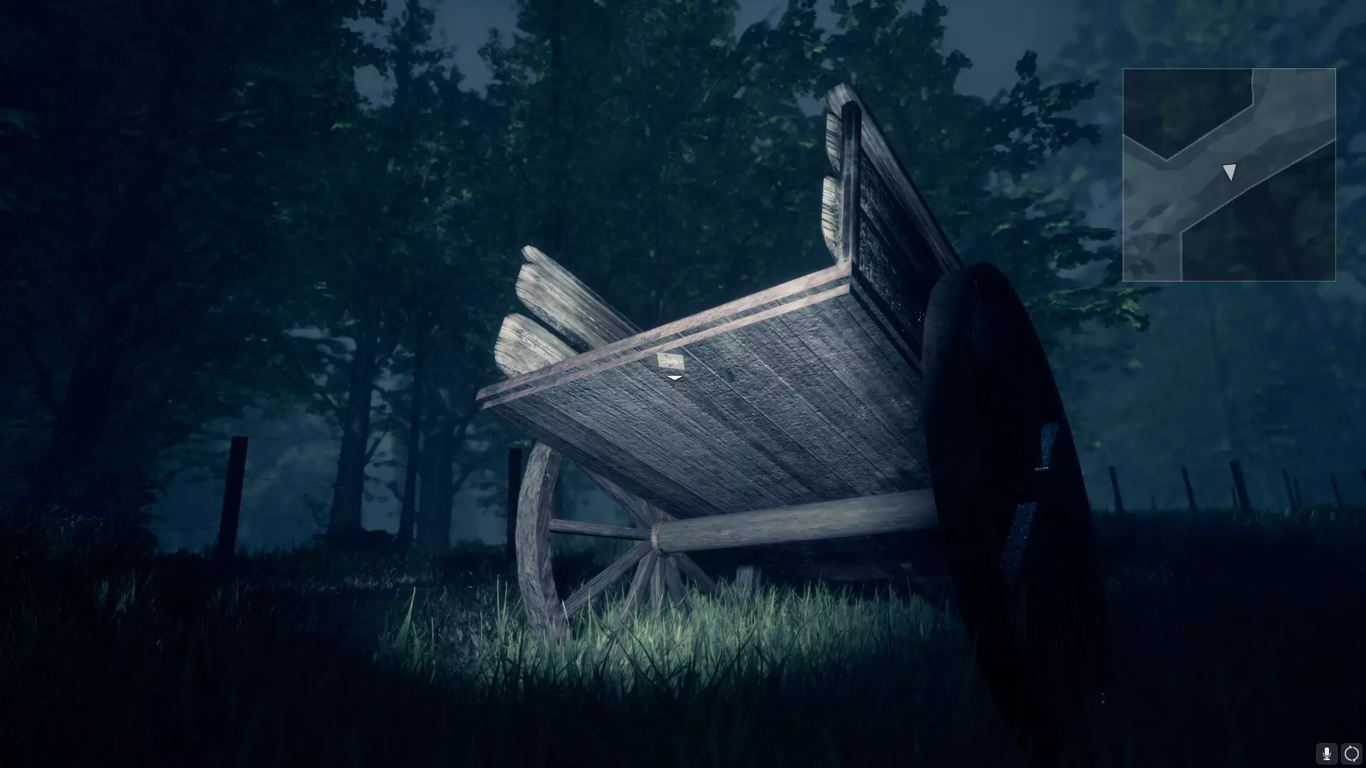 3) 在你从工具小屋救出薇拉后。在一辆手推车下方,位于通往发电站和种植园的道路之间: