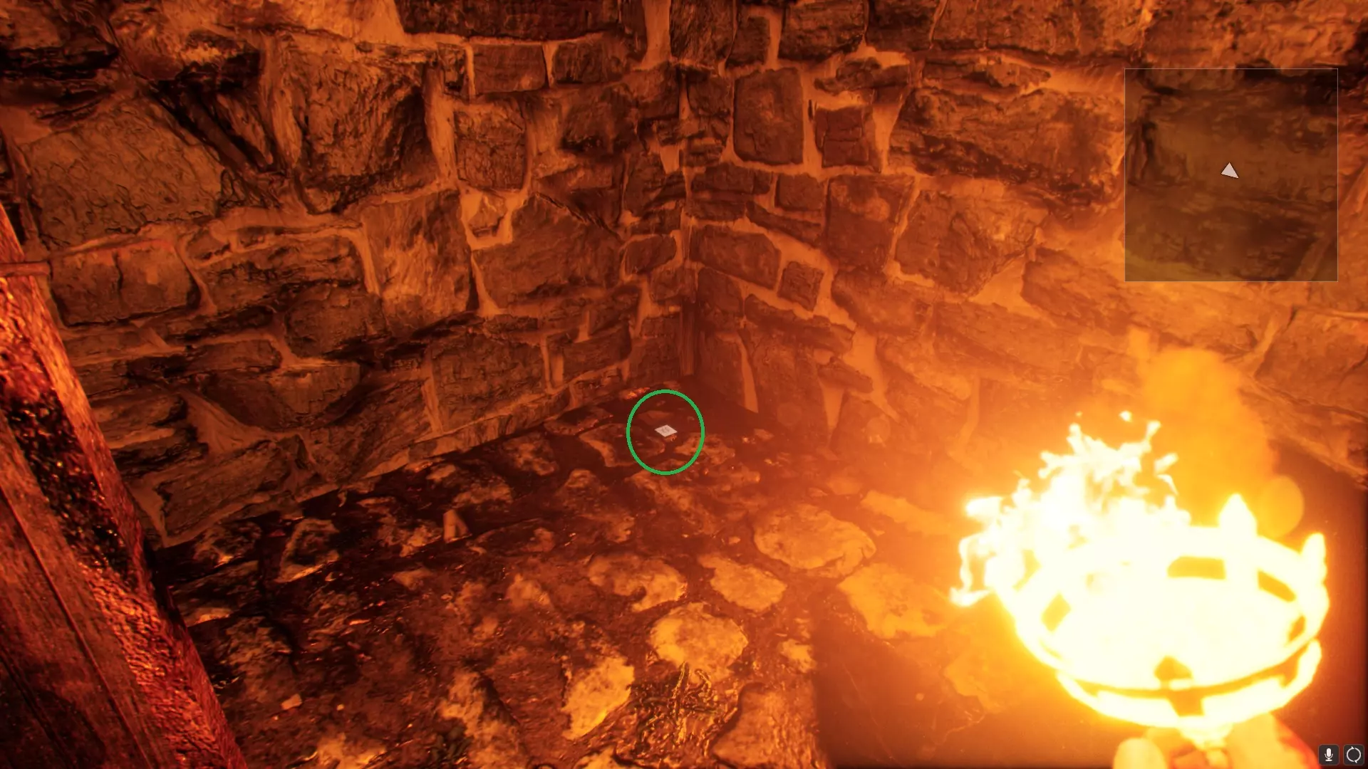 在倒塌的柱子上,老房子旁边(容易错过,卡进柱子里)