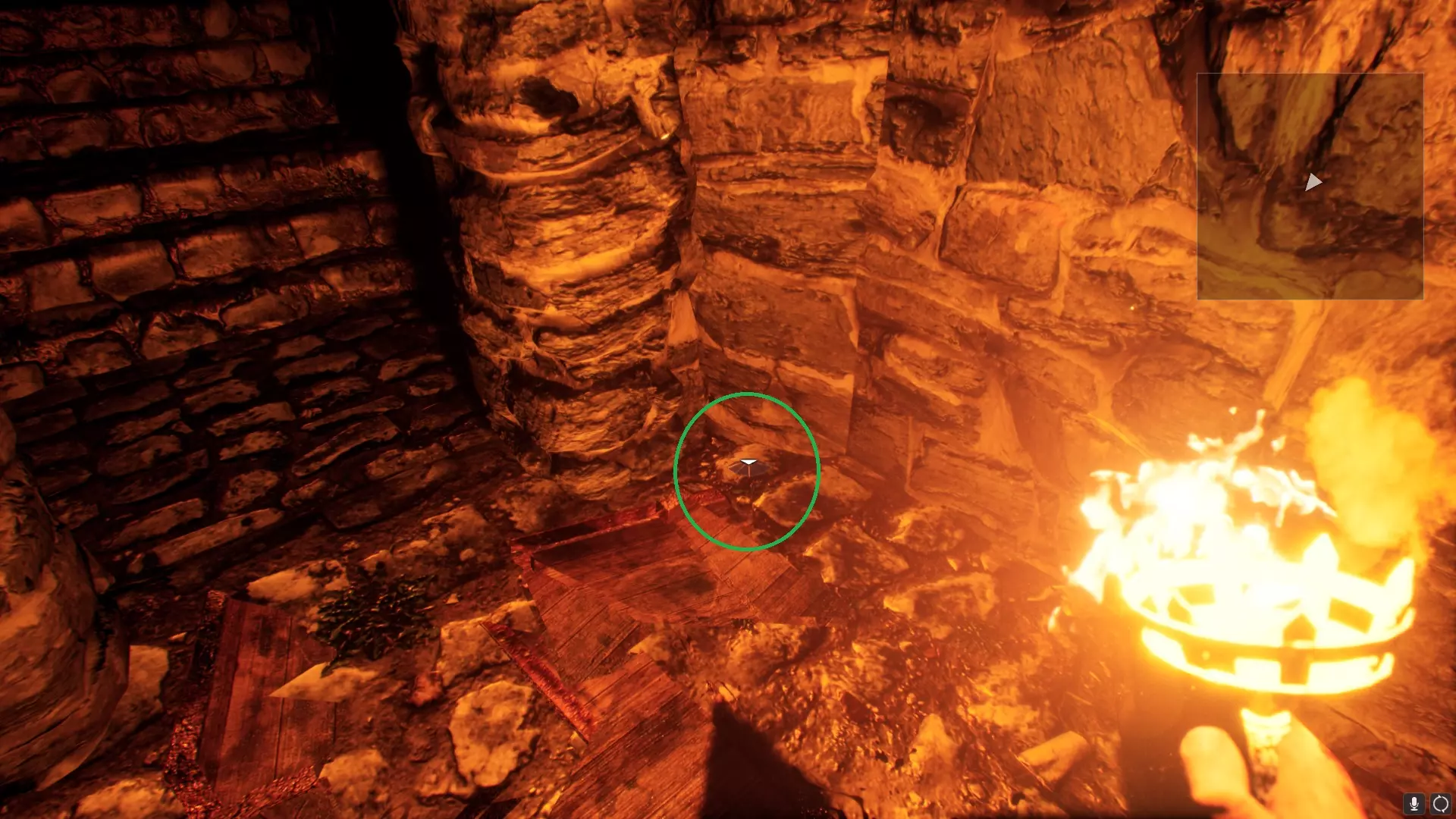 在地下墓穴中,一面假墙旁边