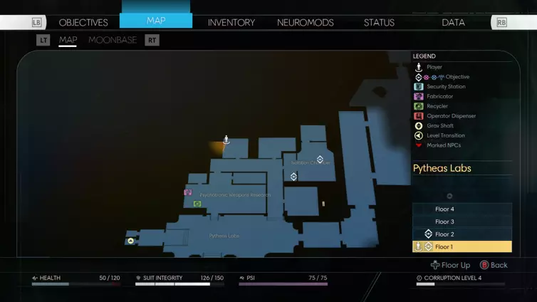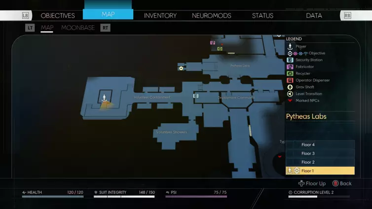 你可以在志愿者收容区的皮西亚斯实验室找到第6章。你需要找到附近的安保站来解锁牢房的门(终端机是下方截图中央附近的浅蓝色标记)。存放该章节的牢房是5号牢房,一直走到提丰扫描仪后面就能找到。它在房间中央的床底下。