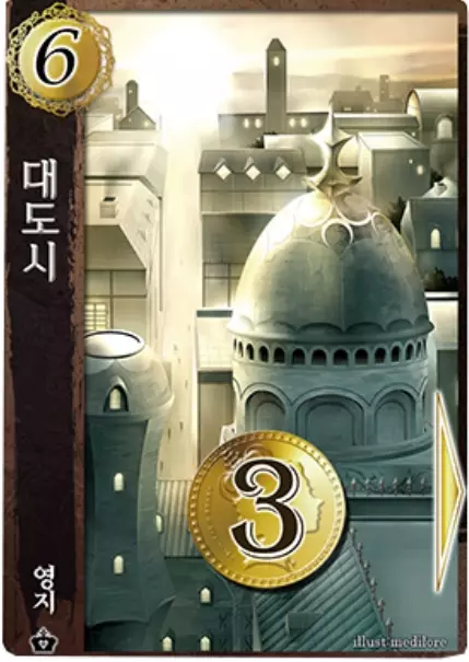 最后,如果自己已拥立公主,那么在主阶段还能进行一个额外行动。每拥有1张直辖地(拥立公主时使用的领地),可以储存1张费用不超过该领地价格的行动卡。此外,当对手使用攻击卡时,如果储存区里有防御卡,也可以用防御卡进行防御。在主阶段内,可以随时放入或取出储存的卡片。 3-2. 第二阶段 以下3种行动中只能选择一种。 1. 从市场购买卡片 可以使用主阶段在场上发动产生的金币(手牌中的金币无效)不限次数地进行购买。购买的卡片直接进入墓地。