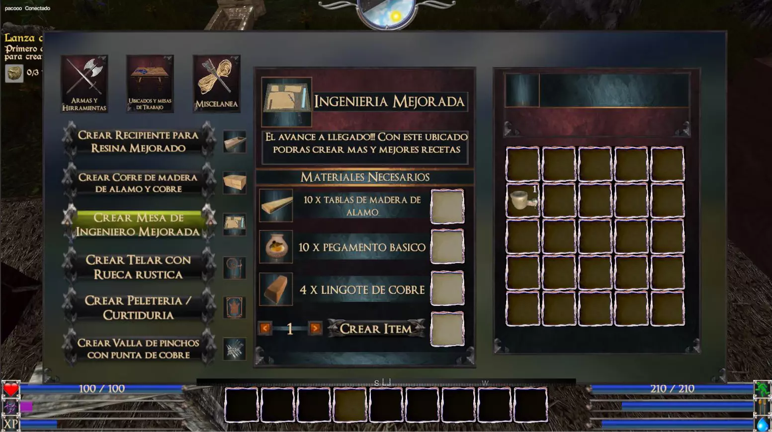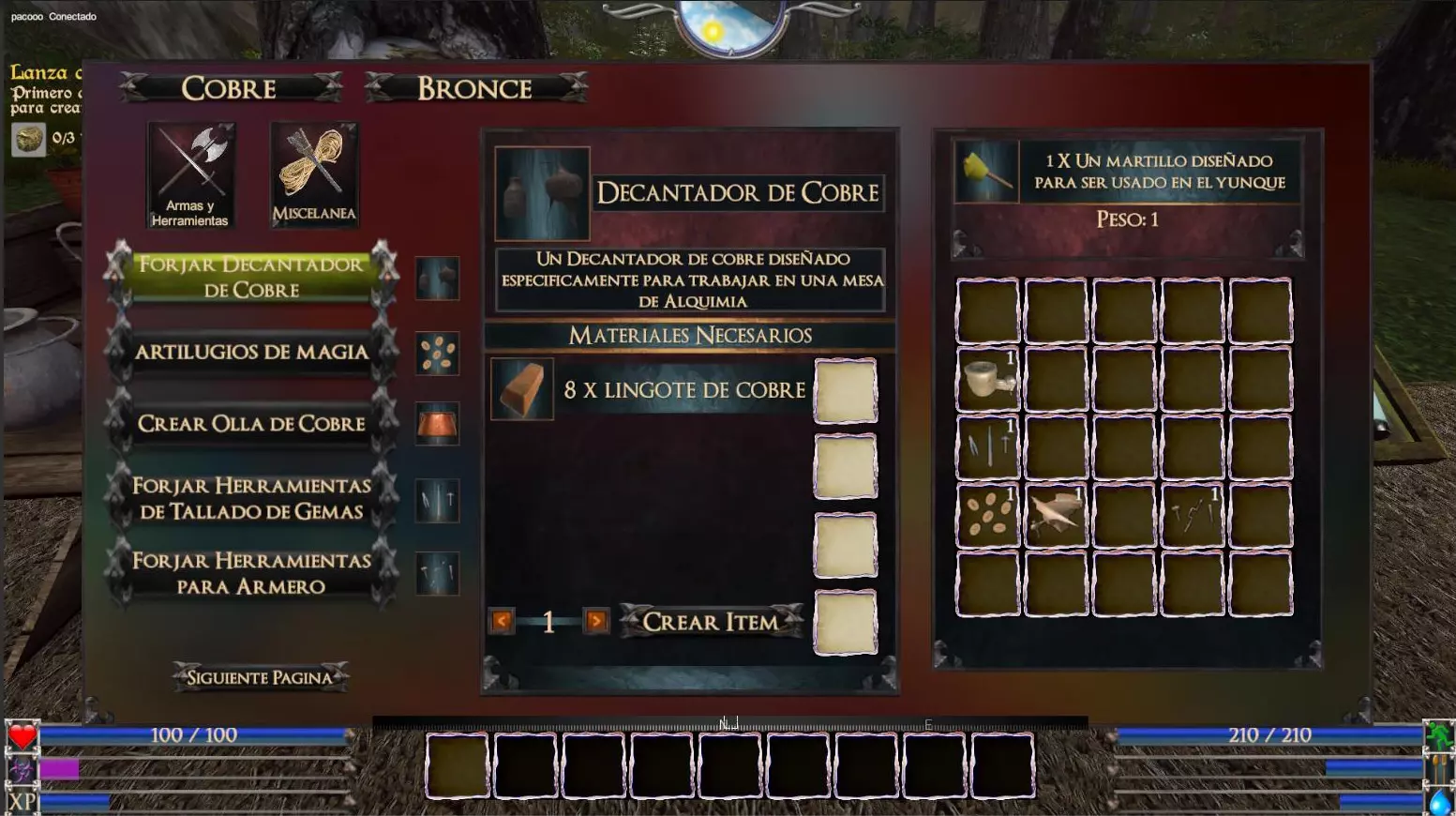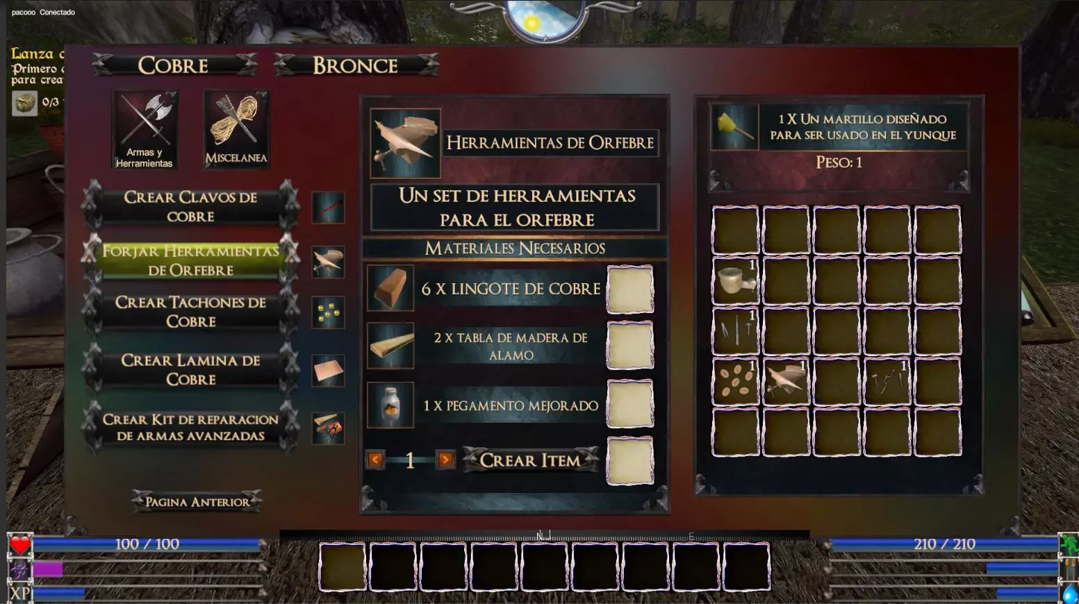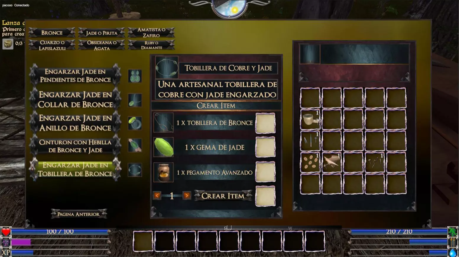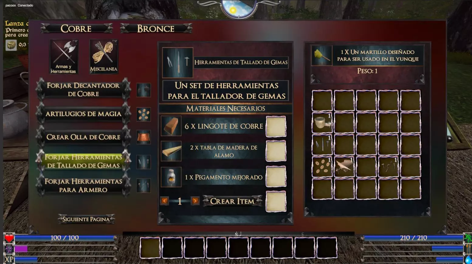 铜钻石吊坠(重量:0.1 护甲经验值+5%) 高级珠宝工作台(青铜)