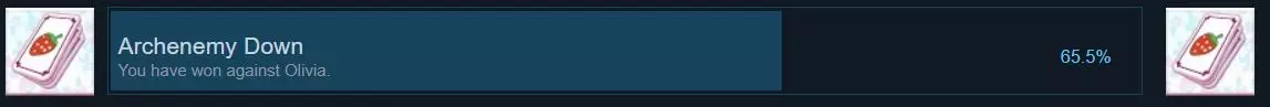 另一面:观看【我们现在是平民了】剧情后获得。你需要在卢西恩路线中开设学校并输给奥利维亚,才能解锁该剧情。 另类决斗:在自由模式中,前往【交换卡牌】,若杰拉尔德出现,选择【其实我是来和你决斗的!】而非交换或与他交谈。由于他不是女性,无法进行常规游戏对战,因此你们将使用常规游戏卡牌玩记忆翻牌游戏。战胜他即可获得该成就。 征服与录用:观看【统一】剧情后获得。你需要在杰拉尔德路线中开设学校(并战胜奥利维亚?),才能解锁该剧情。此外,你必须事先获得【Alternative Duel】成就(即与杰拉尔德玩过记忆翻牌游戏)。我现已完成所有成就,暂时将这份指南留在这里。之后我会回来进行整理,希望目前它能帮到大家!如果这份指南对你有帮助,或者你有任何问题,欢迎留言——我通常会很快回复。