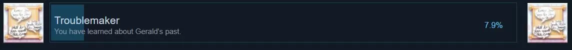 捣蛋鬼:在自由游玩模式中,前往【卡牌交易】处,若出现杰拉尔德,选择拒绝交易。他会询问你是否是特意来找他,此时如实回答想和他聊聊,他就会给出5个话题中的一个。其中最稀有的话题是关于他的过去。我试了大约10次才成功触发。