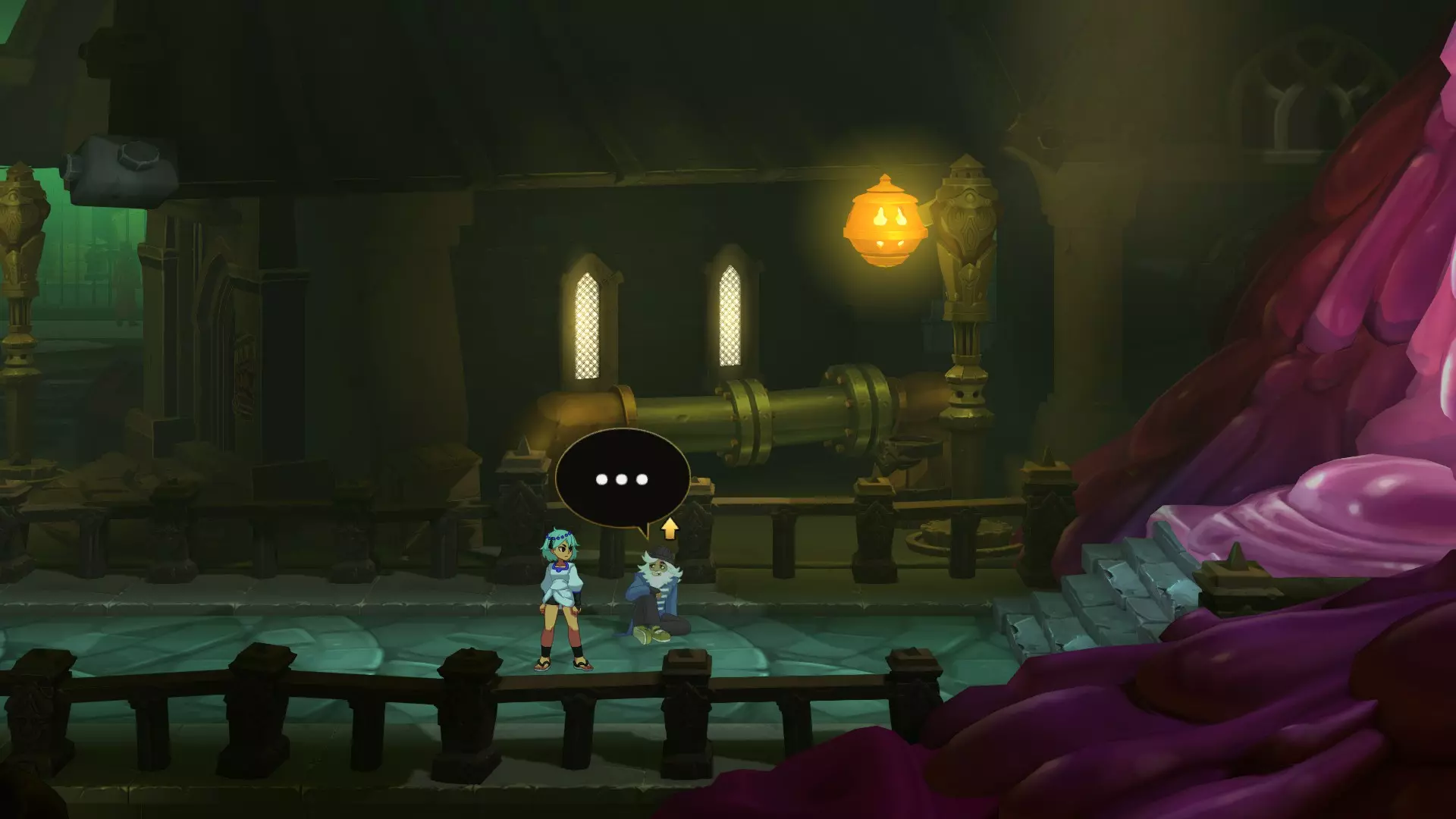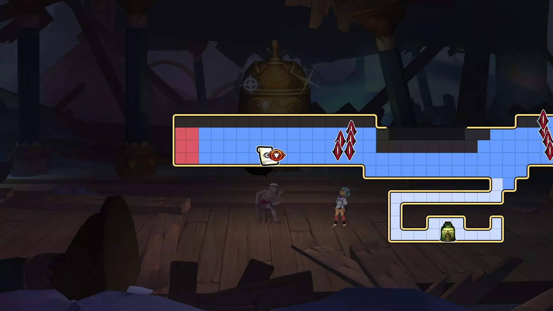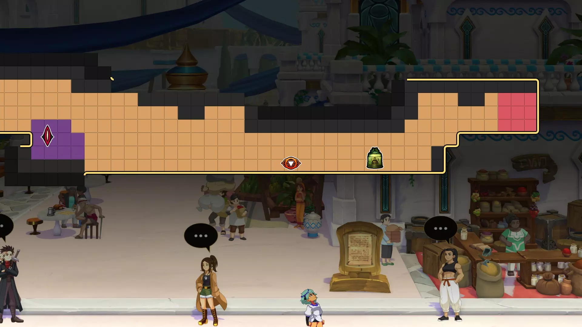 1.【铁王国】王国入口处,与公主对话 2.到达图2处(在通往史莱姆化公主BOSS战的烟囱左侧),触发剧情 3.【泰库朗】到达图3处(通过查克拉之门前往泰库朗,往左走,遇到第一个岔路后向下走),触发剧情 人参和蜂蜜
