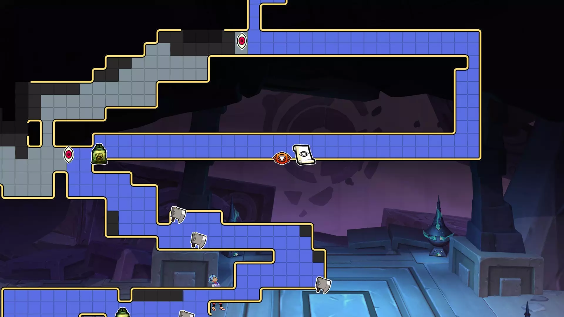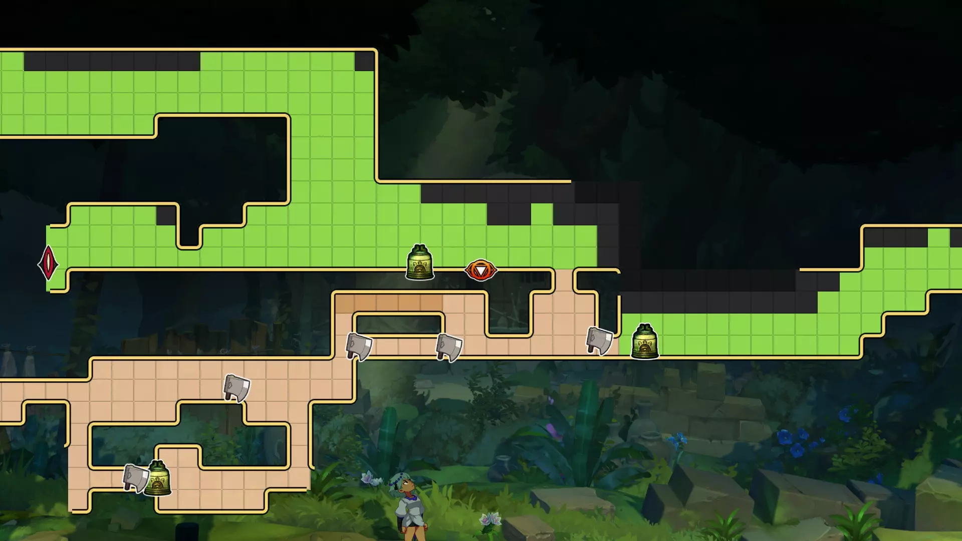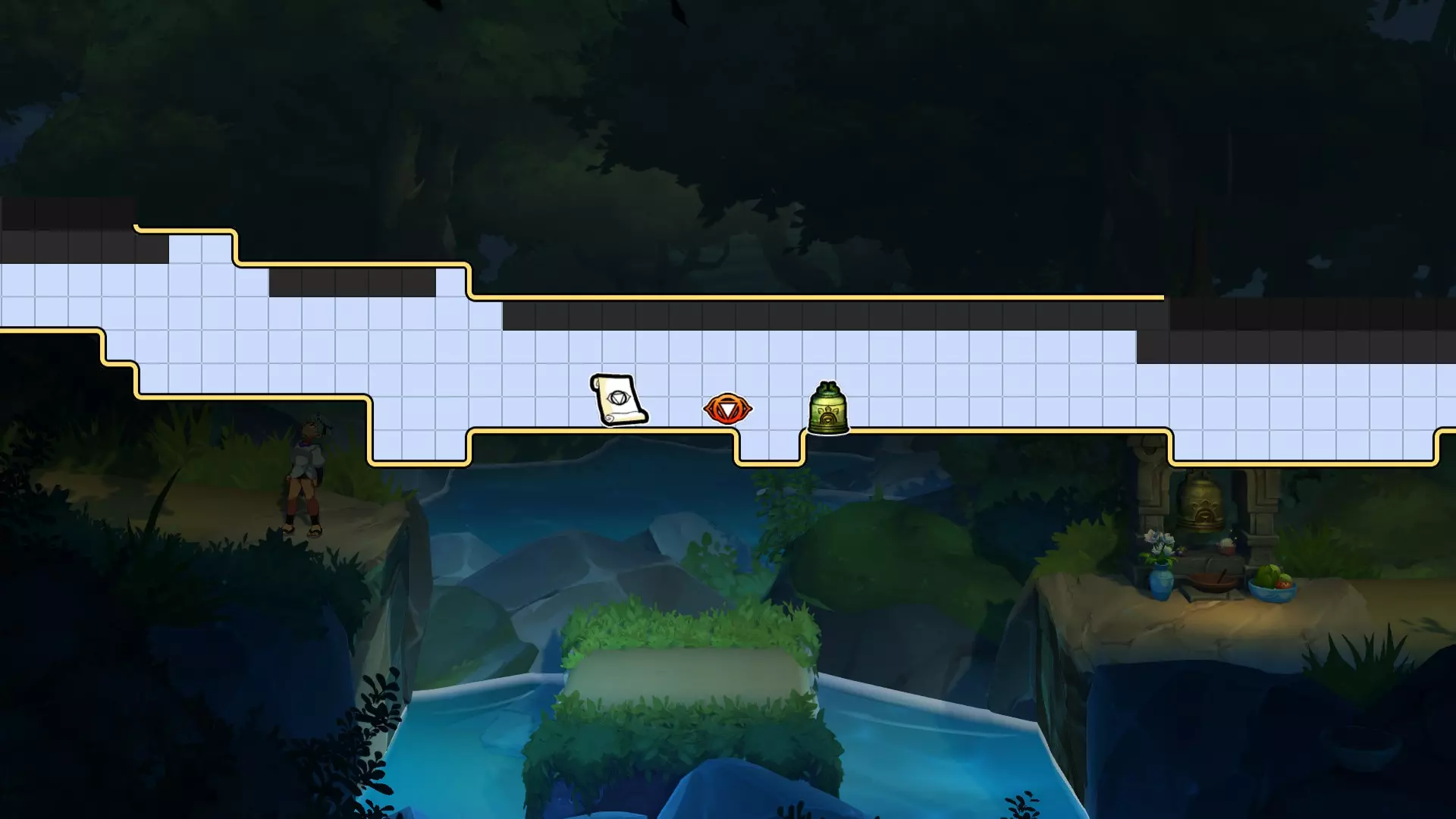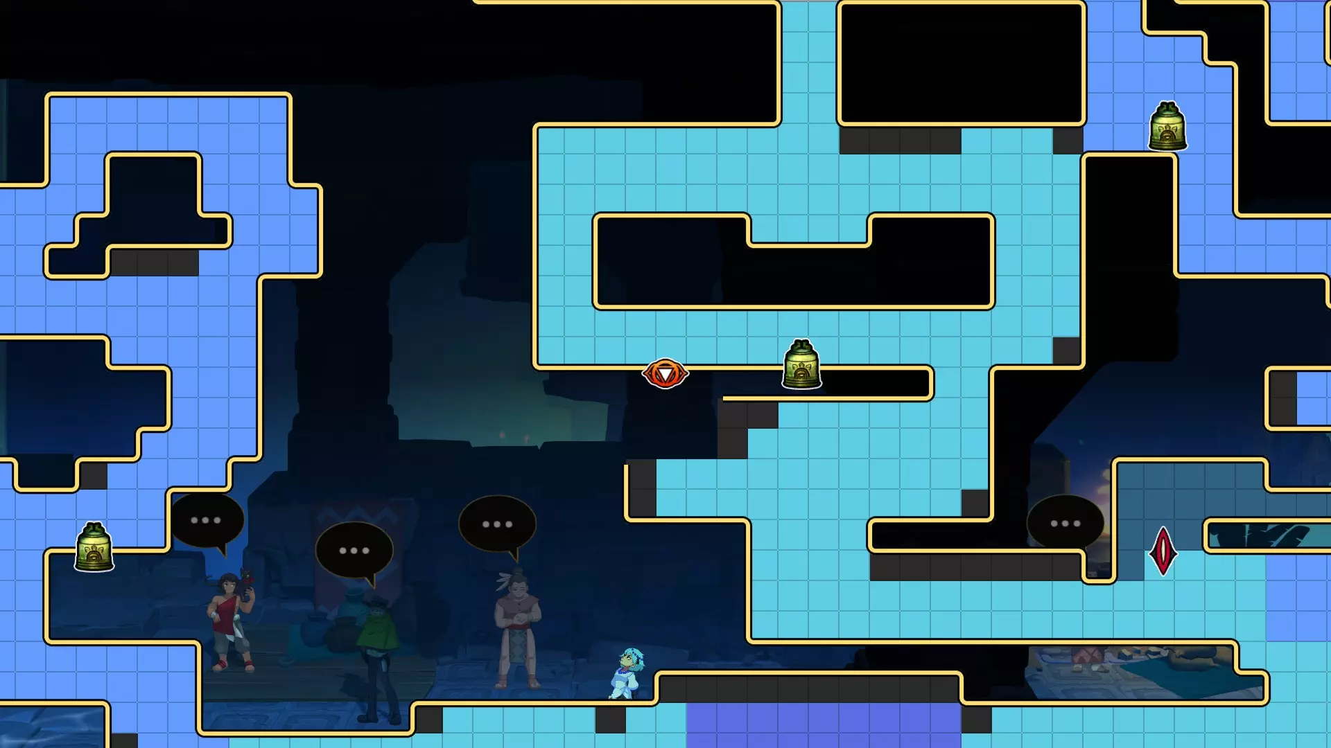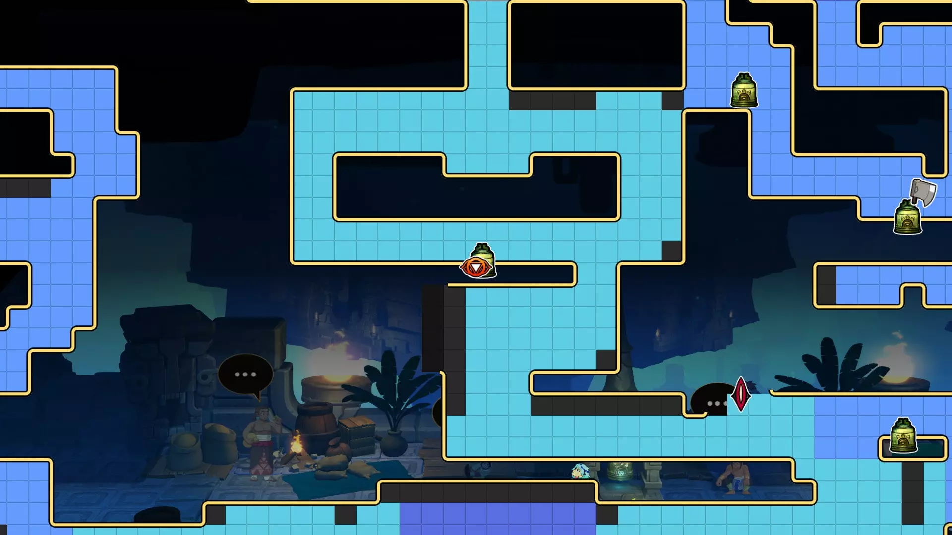 1.【卡努尔】与努娜的姐姐交谈 2.往右下走到达该处,用裂空击顶开天花板,探索洞穴后触发剧情 3.到达图3(需要回到水面上),顶开图3中发光处 4.顶开图4发光处 5.回到种菜的洞穴,顶开图5发光处 拉缇戈