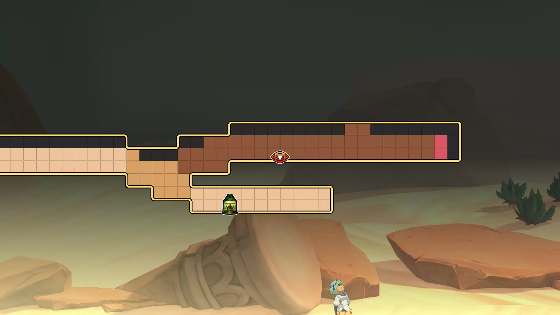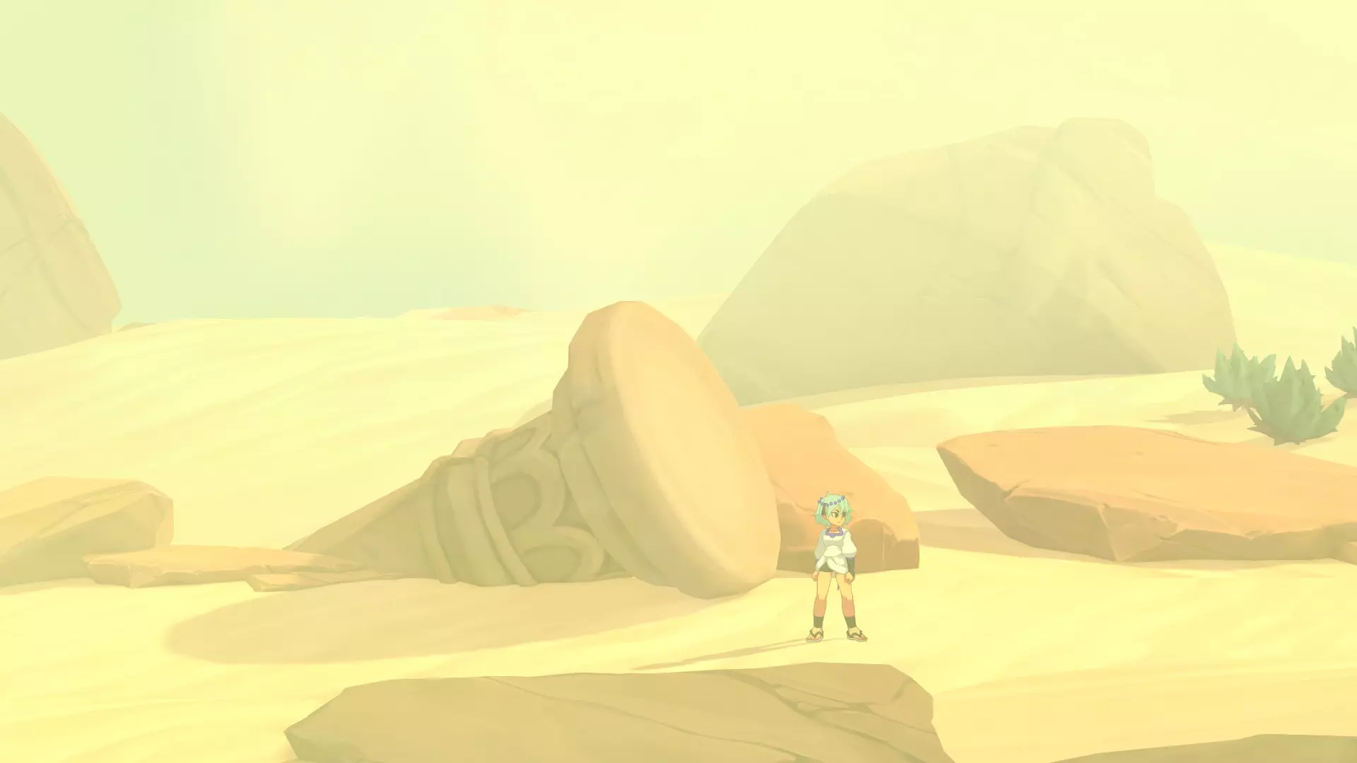 1.【卡努尔】与佣兵团员对话 2.【沙漠】在图2处触发剧情 (此处在索兰尼加入队伍时所在洞穴的正上方,可从港口出城后一路往右,亦可在阿依纳故乡的传送点一路往左) 扎赫拉