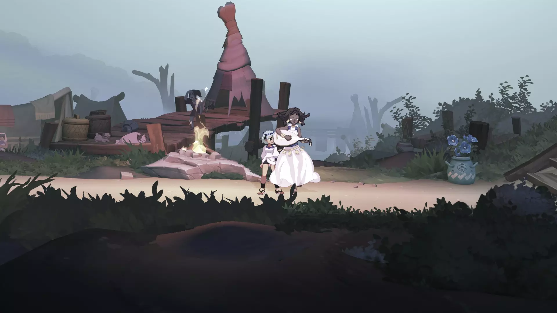 1.【阿什瓦特村庄】到达图1处,触发扎赫拉弹琴的剧情 2.往右边走,到达图2处,触发剧情 3.返回图1处 吞加