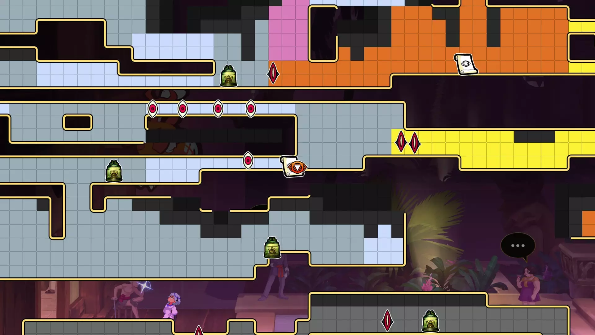 1. 分别在【泰库朗】图1处、【港口】图2处、【铁王国】图3处,触发剧情 2. 【泰库朗】,到达夜总会(图4处),触发剧情 涟