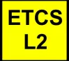 表示ERTMS/ETCS系统等级变更为2级的预告位置。黄色方形标牌,带有黑色边框和黑色字母数字标识“ETCS L2”(“ETCS”标识位于“L2”上方):ETCS 8号指示器【进入ERTMS/ETCS 2级区域】