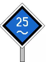 W 20信号向列车乘务组表明,列车正驶入一段长度小于该铁路线规定制动距离的区间,要求司机在控制列车运行速度时保持特别谨慎。 W 21信号【速度提升信号】与信号机上的信号一同显示时,表示从该信号机开始可以按信号指示的速度行驶。