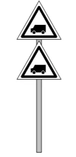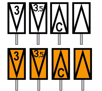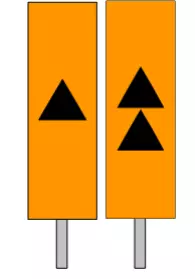 - W 11p指示器用于提醒司机注意接近道口警示标。 - 带有一个三角形的W 11p指示器设置在距离道口警示标200米处,带有两个三角形的W 11p指示器设置在距离道口警示标400米处,均位于轨道的同一侧,即其指向的道口警示标所在的一侧。 - 如果你不知道什么是道口警示标,可以参考相关关于警示标的指南。 - W 13指示器【轨道指示器】表示需要抬起犁刀并关闭除雪犁的翼板,同时在道岔、道床清理机和其他轨道机械作业时要格外小心。