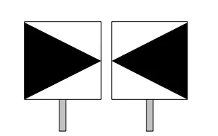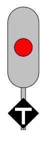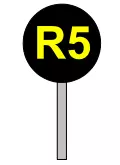 -该指示器用于标记车站或站点内列车停靠时车头应到达的位置;需要停靠的列车应停靠在指示器前方适当距离处,以便乘客上下车最为便利。 -指示器设置在站台末端或区段前方,位于其所指示轨道的右侧;设置在站台末端(非线路终点)的指示器仅适用于停靠该站台的列车,在特殊情况下(如无所需的终端设备),可将其设置在站台末端轨道的左侧。 W 5型指示器【越行指示器】 表示越行边界。