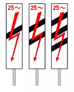 列车运行调度站进站信号机的警示板,该警示板所在位置为25千伏交流电电气化区段的起点(W 11c指示器)
