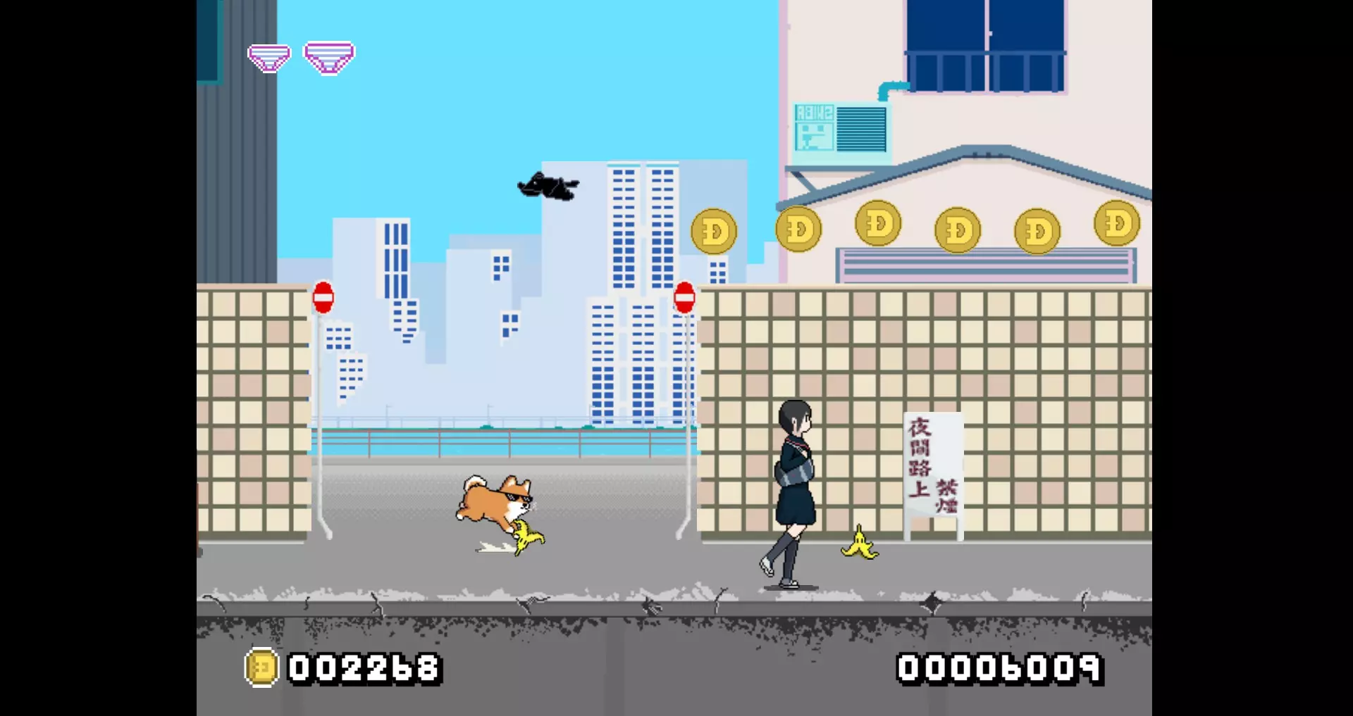 不过,鸟类攻击前几秒钟,屏幕右侧会出现一个指示器。这个技巧很简单,因为80%的情况下,每种动物都不难躲避……当然,除非你运气不好。 技巧5 善用香蕉皮! 香蕉皮在躲避坑洞或助你跳上下一个平台时非常有用。这操作极其简单,用香蕉皮加速很快就会成为你的本能!但要注意,碰到香蕉皮会消耗半条内裤,所以一定要遵循技巧3,保证你的内裤储备充足!这些增益效果也是你击杀鸟类的唯一途径,因此在特定情况下会非常有用。