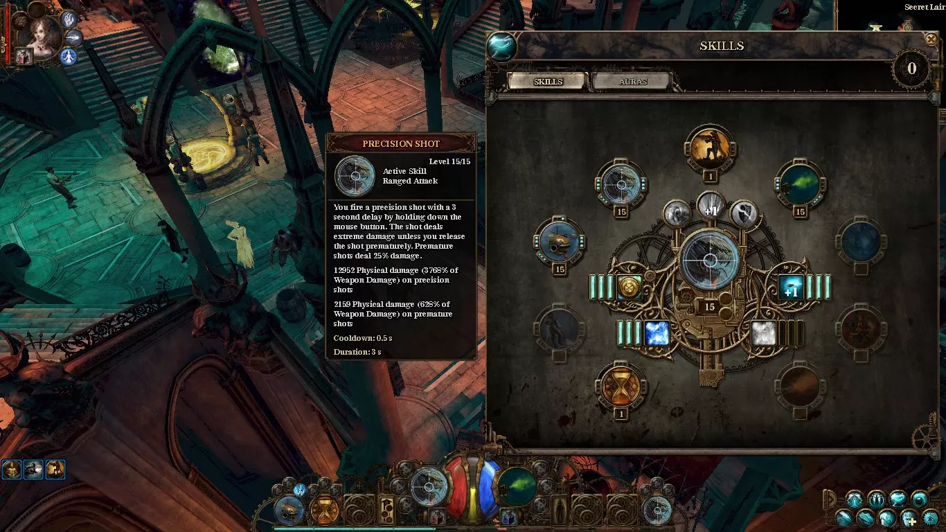 技能 首先将点数投入【寻路者】及其增加20/40/60%暴击率的强化技能。这能确保你轻松通关游戏。 然后将【狂暴光环】点满以最大化暴击伤害,之后再投入【剧毒射击】和【精准射击】来提升基础伤害。当你从装备中获得足够的暴击伤害百分比后,洗点【狂暴光环】,专注于【致命一击】及其强化技能。 - 我不使用【战斗姿态】,因为你无法承受站立3秒不动,在【无畏】难度下这样做会导致死亡。 - 【永恒领域】是我们的应急技能,但由于其冷却时间很长,投入超过1级没有意义。 目前我的技能分配如下: