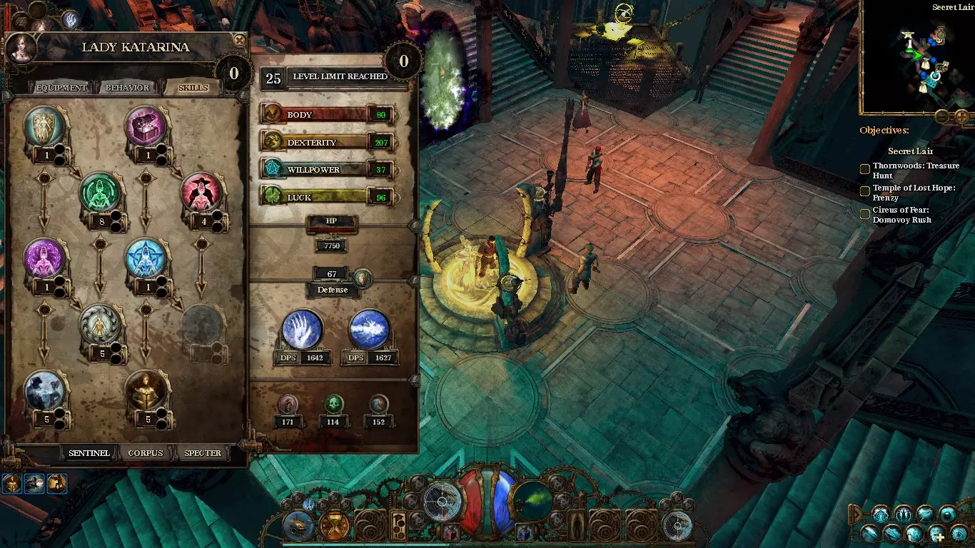 装备 显然你需要一把好武器,没有好武器你的伤害会很低。最容易获得的武器是皮加索斯出售的赏金猎人套装。 除此之外,留意带有以下属性的装备: + 暴击伤害加成 + 暴击率 + 全伤害 + 敏捷 + 毒素伤害百分比 + 生命值 + 防御力 + 幸运 + 体质 我还在用一半升级过程中获得的稀有装备,但已经能玩无畏场景了。 卡特琳娜 永远保持幽灵形态! 她的伤害非常低,防御力几乎为零,在无畏场景中被击中会受到超过2000点伤害,所以她死得很快,而且复活需要相当长的时间。不要让她战斗。 将她所有的属性点都投入敏捷,技能点这样分配: