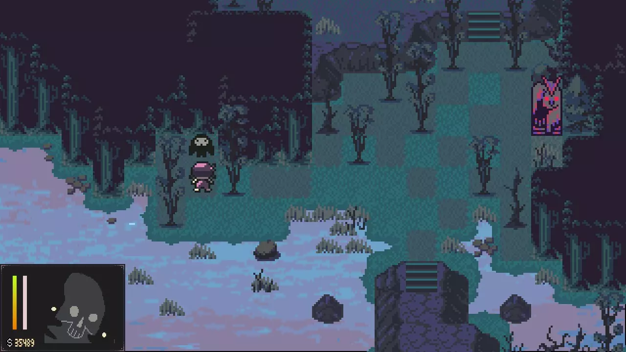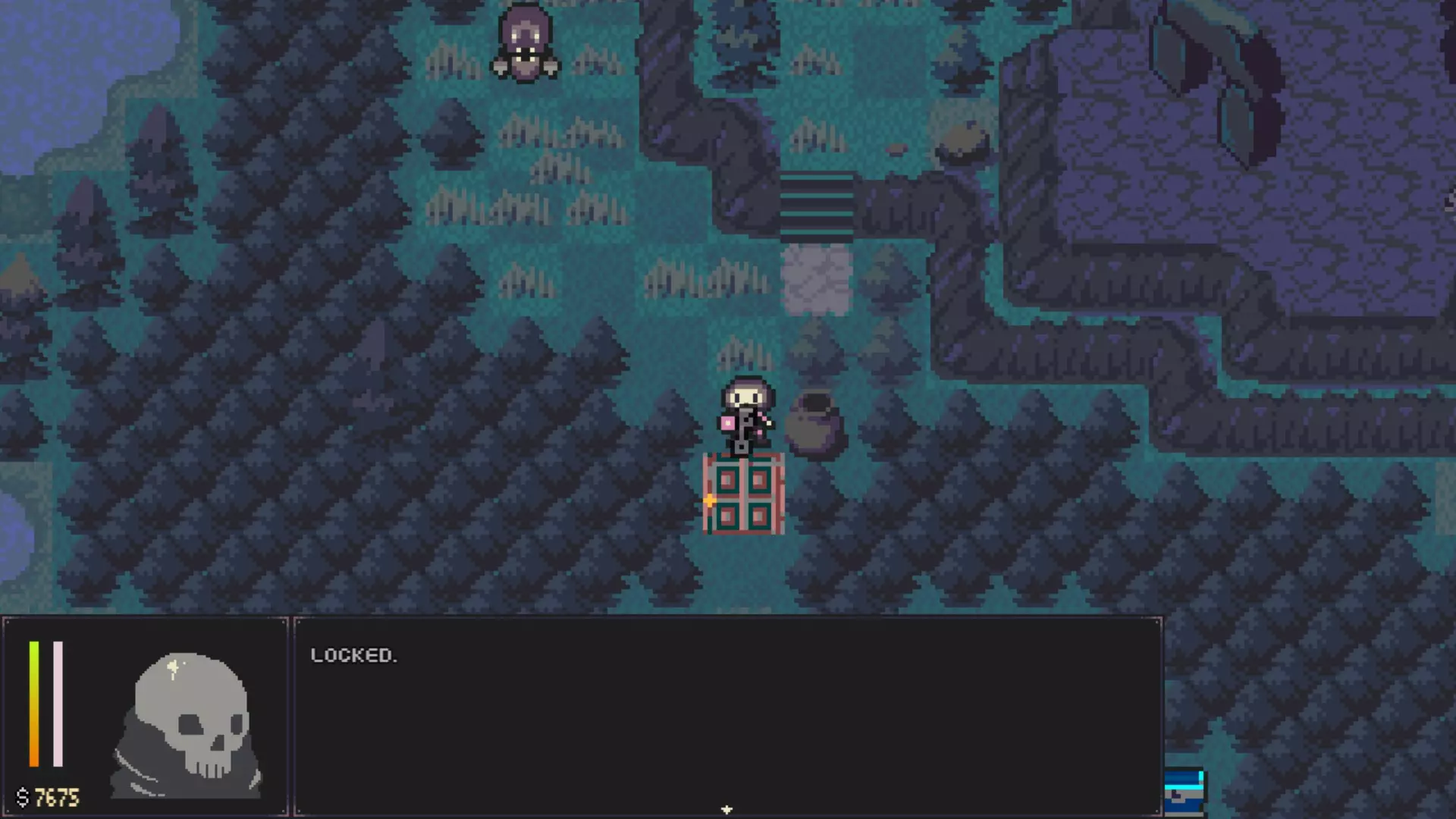 这到底是谁的房子 找个地方坐下 - 离开酒馆,然后进入地图最西区域那间之前锁着的房子。 医院 - 和医生对话。 - 医生附近的女人埃莱奥诺拉可以帮你恢复满血。 - 离开医院。 墓地 - 再次进入墓地,但这次从南侧出口出去。 - 沿着西北方向的小路走,能找到一个宝箱。 - 前往南侧出口。 2. 第二章 - 脱钙 闹鬼林带 - 探索该区域。如果生命值耗尽,可以随时返回恢复。 - 区域中央有一张字迹模糊的地图。 - 和西北方向的颅骨巢穴互动,获取一些骨头。 - 参拜神社。 - 打开区域出口附近的宝箱。 - 离开该区域。 渔村 - 前往北侧出口。墓地墓园 - 打开宝箱。 - 打开通往墓园的锁着的门。 - 沿着小路向东北方向前进。 - 拿起镐子。 - 参拜雕像。 - 返回南侧出口。 渔村 - 参拜鲸鱼雕像。可以用你的钱购买被动增益,推荐【微积分】。之后你还需要【失眠】被动才能进入图腾山,所以记得之后获取它。 - 和南瓜对话。 - 进入西南方向的酒馆。 骨头与饮品 - 和酒保对话接取“支线任务”。 - 和另一个骷髅对话并选择“询问方向”。 - 离开酒馆,解锁南侧出口并进入。 坟墓半岛 - 参拜神社并设置你的 checkpoint。 - 打碎巨石。暂时不要进入房屋,里面的 boss 对你来说太强了,无法击败。- 前往西侧出口。 疯长草原-向南走并打开宝箱。 - 向西走,直到看到一块巨石。 - 使用你的镐子打破巨石。 - 进入洞穴。 - 参拜雕像。你也可以通过冬眠来恢复生命值。 - 与男子对话,将他带回村庄。之后你可以与渔村鲸鱼雕像前的南瓜对话,以获得一些奖励和一个成就。