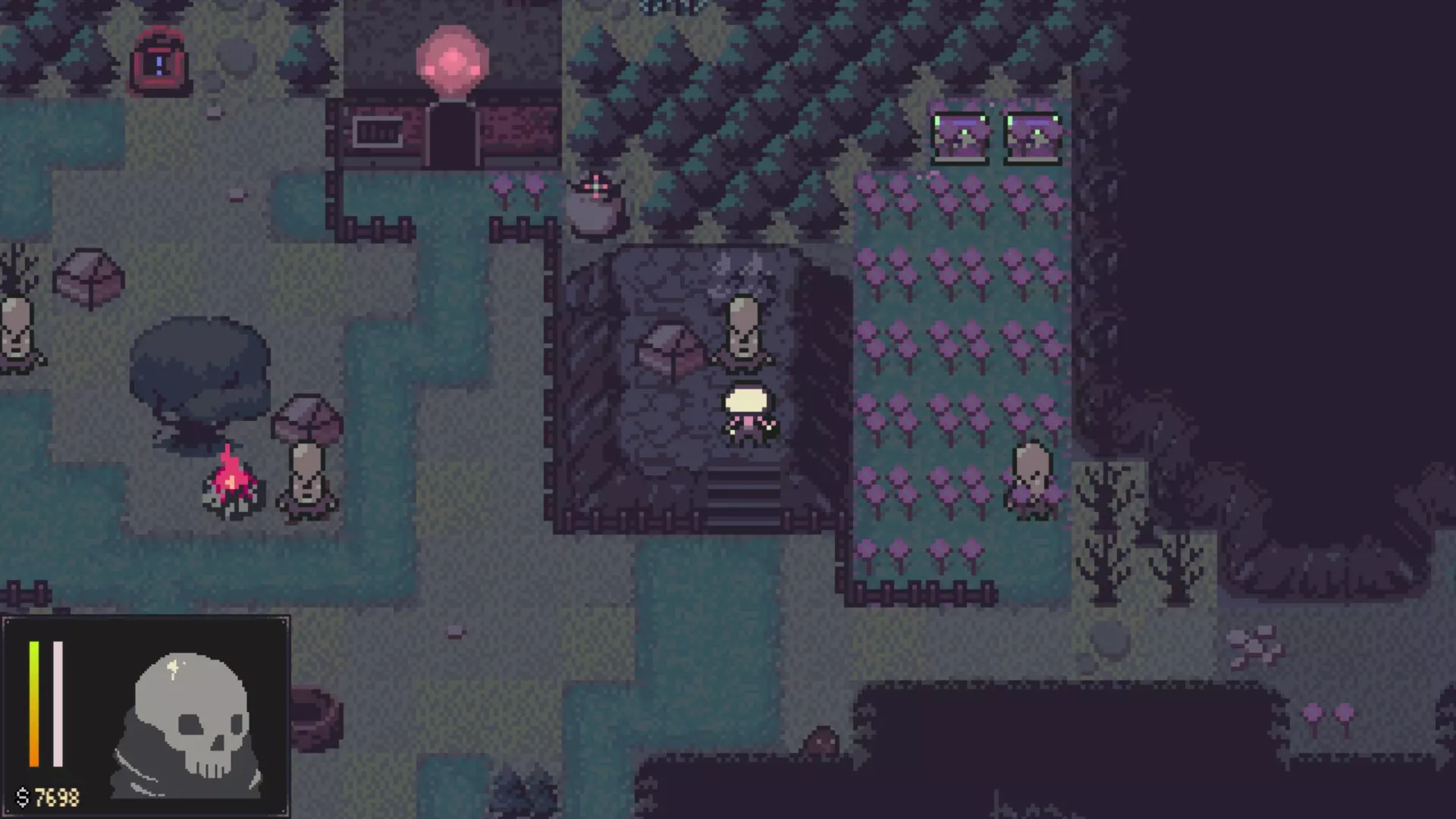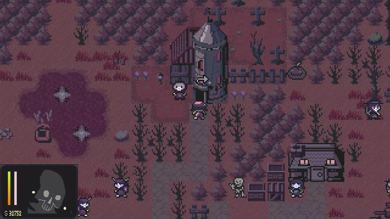 重新营业 为渔村重焕生机 - 重新进入此场景寻找宝箱。 - 进入附近的房屋。 玩偶匠商店 - 与西边的男子对话接取任务。 - 与卖家交谈。 - 与垃圾桶互动。 - 离开该区域。 疯狂草地 - 前往最东边查看雕像并进行参拜。 - 返回房屋附近区域。 - 前往西南区域。 - 捡起东南方的镐子。 - 沿西南路径到达巨石处,使用镐子。 - 打开宝箱并调查骸骨巢穴。 - 沿路径前往西北方。 - 打开宝箱。 - 与北边的骸骨融合。 - 东边还有另一具可融合的骸骨。 - 戳东边睡着的猫。 - 前往西南出口。淹没湿地 - 沿着小路走,直到找到一个宝箱,打开它。 - 沿着北边的路走,会看到一个宝箱和一座雕像。参拜这座雕像,它提供的被动技能比渔村的那个更好。 - 返回之前的十字路口,沿着南边的路走,找到一座雕像并参拜它。 - 继续沿着南边的路走,会遇到一个武士。给他一份骨粉,他就能回村了。如果你在酒馆和他对话,他会给你一根钓鱼竿用来钓鱼,还能解锁一个成就。