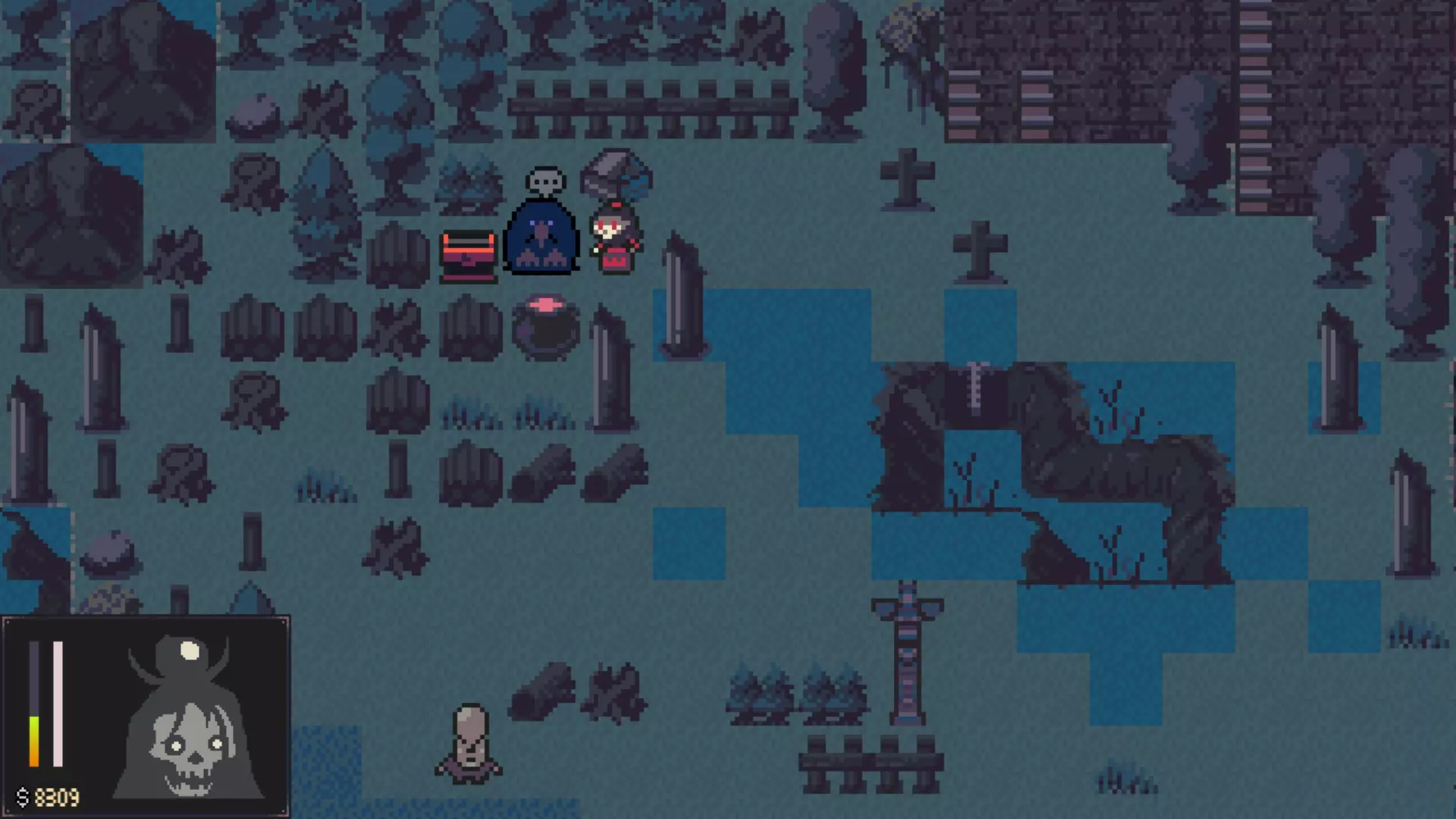 圣莫特斯礼拜堂 - 存档并击败 boss。 Boss:Zengyrf 我的等级:57(力量35,技巧70,灵魂151,怨恨53,速度22,生存30) 我的装备: 鲸鱼武士刀(用于格挡) 鲸鱼长矛(用于物理防御属性) 渗透法杖(用于守护+吸收) 雷霆风筝盾(用于防御+反击) 雷霆旧玩偶(可更换为任何增加灵魂属性的物品) 风暴戒指(可更换为任何增加灵魂属性的物品) 阵风魔典(可更换为任何增加灵魂属性的物品) 雷霆符文(用于雷霆) 记忆: 微积分、磷酸盐、护腕蛇、失眠、报应、大笑、洞悉、幻影伙伴 在渔村从牧师处获得祝福以提高获胜几率。在防御>攻击>守护/格挡之间交替使用。我想获取【掩体】技能但一直没成功,所以改用了【格挡】。尽量去获取【吸收】技能,因为你需要大量治疗(【季风】和【雨雾】在这场战斗中是不够用的)。 这场战斗需要一点运气。如果你的最大生命值被减益两次,死亡几率会很高。如果你的生命值低于100,死亡几率也会很高。当出现这种情况时,就施放【格挡】碰碰运气(如果受到高伤害技能攻击,【防御】或【守护】不会有任何效果),然后迅速施放治疗/【吸收】。要确保始终保持【防御】/【守护】/【格挡】(如果你有的话,【掩体】也行)处于激活状态。 如果你的生命值未满,就使用【吸收】。如果生命值已满,可以随意切换到其他攻击技能(我用的是【雷电】)。当Boss的生命值低于50%时,它会大幅削弱你的最大生命值,所以要时常保留你的【守护】技能,只在最大生命值被削弱后的一回合使用。 如果你觉得自己实力不足,可以在【女巫猫】处升级,或者通过吃糖果来提升属性。我在游戏的这个阶段有36000金钱,这意味着如果想让战斗更轻松,我可以购买大约120颗糖果来提升【灵魂】属性。大多数糖果可以在【骨头与饮品】(渔村的酒馆)以每个300的价格购买,或者在【博雷尔海滩】(从格里戈里村向北两个场景)的【薇奥莱塔】处以每个400的价格购买。我尝试过,在【灵魂】属性达到402时,只用3回合就击败了Boss。