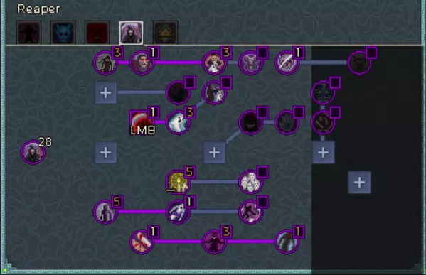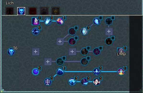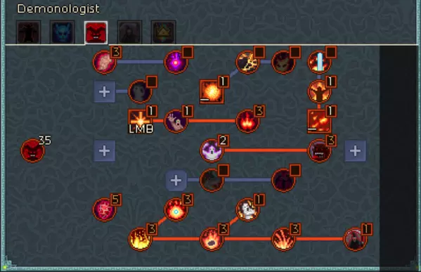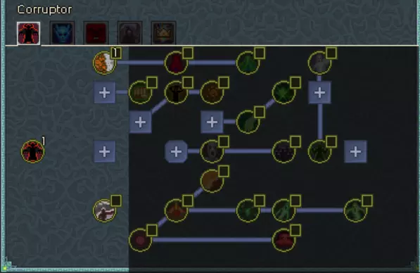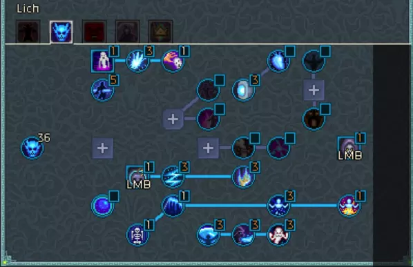 腐蚀者专精 - 这里仅提供一些额外的攻击速度和闪避。 巫妖专精 - 【寒冰幽魂】和【幽冥之握】为我们的灵体提供了出色的群体控制能力。我们还能从【冰屑】和【燃烧协同】中获得巨大的伤害加成。 职业专精 - 这里(以及我们的装备上)最不寻常的一点是缺乏【冠冕杀戮】,遗憾的是它对同伴无效。在升级过程中,你可以将【拾荒者】换成【巧手】以获取一些额外材料。 恶魔学者专精 - 没有【广域炼狱】,这个Build就无法生效,因为它能让我们的【燃烧】效果扩散到整个怪物群。遗憾的是,我们无法从【恶魔学者专注】中获益,因为我们伤害的基础来源是火焰头骨,它并不被算作该技能树的技能。死神专精 - 这里有一些半有用的被动技能,其中【死亡临近】可作为终结技。总专精点数最低要求为480点,达到后将所有剩余点数投入生命值。