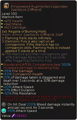 坚定不移的忠诚TL - 主人的号令是任何基于伙伴的流派的核心套装。火焰领主的护身符LR(制作获得)- 地狱召唤者现在每次施放引爆时都会触发,并且由于四胞胎不算作“伙伴技能”,它也会强化恶魔食欲。