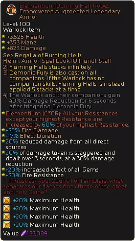 燃烧地狱长袍(传奇)-核心套装部件 源质护符-任何流派最容易堆满抗性的装备。这里选择火焰抗性只是为了贴合主题。