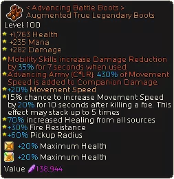 战斗之靴TL - 使用灵魂传送后获得额外伤害减免。 进军之师LR(制作)- 基于自身移动速度为同伴提供显著伤害加成,且可与杀戮急速附魔叠加生效。