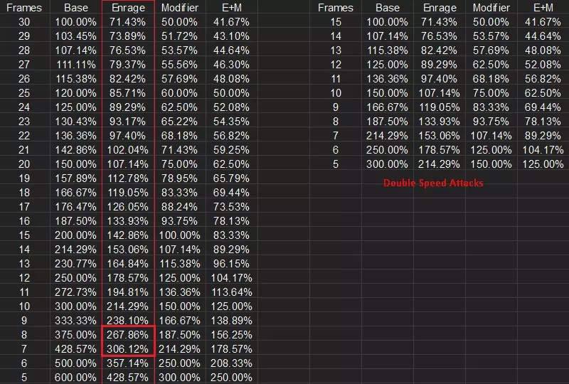 这是游戏中的攻击速度阈值图表,红色矩形区域是我们当前的状态——在【狂怒】+269%的情况下,我们的攻击动画时长为8帧。这一切都基于游戏引擎60帧的限制,这意味着我们每秒攻击60/8=7.5次。现在假设我们能达到下一个阈值307%,那么攻击速度将为60/7≈8.57次/秒。通过标准计算可得8.57/7.5≈1.1428,即大约提升14%的每秒伤害。 由于我们所有装备都已在可能的情况下洗出了攻击速度词条,因此唯一可能达到307%的方式就是通过宝石,所以我们必须将武器上的2颗30%暴击伤害宝石换成2颗16%攻击速度宝石。我们同样假设讨论的是该流派的终局变体,此时我们将头盔上的魔力吸取词条替换为额外35%暴击伤害,使总暴击伤害达到629%。宝石提供了其中60%的暴击伤害,因此我们再次计算629/569=1.105,即约10%的额外每秒伤害。这意味着切换到攻击速度宝石实际上更好,不仅因为额外伤害,还因为【灵魂盛宴】带来的额外续航(实际上这一点的影响更大)。 那么问题出在哪里呢?269+2×16=301,这意味着我们需要从其他地方获得6%的额外攻击速度。 解决方案1:我们需要从其他地方挪用3个技能点,并将它们投入到【腐化者】技能树的第一个被动中。我们可以从【亡灵】(死神系)中分配出2点,将其从12%生命值降低至6%,所以损失不算大。不过最后一点实际上只能从【死亡与毁灭】(恶魔学者系)中分配,这意味着我们会失去火焰颅骨的斩杀效果。但我们仍保留暗影颅骨和生命收割的斩杀效果,所以这其实不算太大的损失,只是在某些情况下拥有它会更好。最终这是一个可接受的解决方案,因此如果你正在积极挑战高层级,那么绝对应该进行这样的调整。 解决方案2:我们可以使用【颅骨炸弹】!