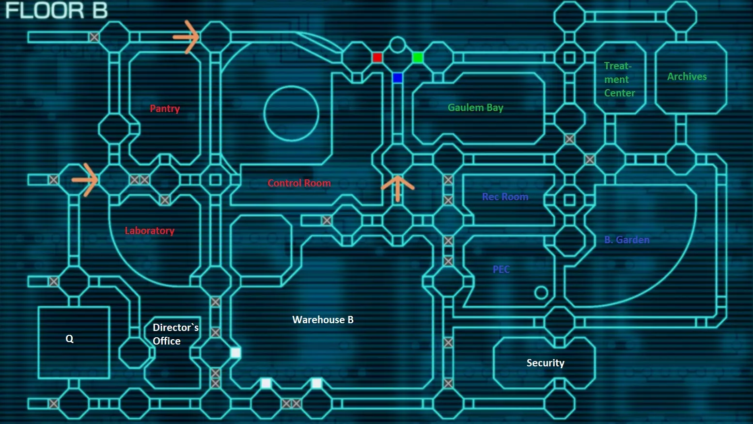 时复一时 结局 谜题环节:电梯 电梯是游戏开始时进入的第一个谜题房间。它相当于一个教学性质的谜题房间,因此这些谜题并不难解决。 搭档: 剧情路线:/ 难度:✯ 长度:☂ 总步骤数:11 ⓵ 第一步:绿色存储卡 [1] 从电梯扶手处取下黄色、绿色、红色和蓝色的把手。 新物品:黄色把手、绿色把手、蓝色把手、红色把手 [2] 电梯角落里有一个灭火器。取下保险销。 新物品:灭火器保险销 [3] 用灭火器保险销作为撬锁工具打开灭火器箱。使用物品:灭火器插销 新获得物品:三角形尖端、方形尖端、五角形尖端、六角形尖端 [4] 将六角形尖端与红色手柄组合。将五角形尖端与绿色手柄组合。将方形尖端与蓝色手柄组合。将三角形尖端与黄色手柄组合。 使用物品:三角形尖端、方形尖端、五角形尖端、六角形尖端、黄色手柄、绿色手柄、蓝色手柄、红色手柄 新获得物品:方形套筒扳手、五角形套筒扳手、六角形套筒扳手、三角形套筒扳手 [5] 查看出口门旁边电梯井的最底部。使用4个套筒扳手卸下彩色螺丝。新道具:平板电脑 新文件:门谜题说明(文件9/52) [2]查看出口门右侧的巨型显示器。你将获得一个新文件。此外,还需拿走显示器左右两侧的植物。 新道具:健康植物、枯萎植物 新文件:骰子游戏图解(文件10/52) [3]打开通往治疗中心的门。你将遇到一个谜题;目标是找到正确的4位密码。此谜题为随机生成,以下是一些解谜提示: a)第一步输入数字1234 b)第二步输入数字5678 如果两步均只显示3个命中或未命中,则说明9是4位密码的组成部分。右侧蓝色的那个显示数字510分钟。 面对左侧的储物柜,触发一道数学谜题: 红色时钟:11400秒=190分钟=3小时10分钟。 蓝色时钟:510分钟=8小时30分钟。 因此我们需要输入的密码是8 30 3 10: 6+2=8 13+17=30 1+2=3 6+4=10 从储物柜中取出物品。 新物品:彩虹树根 [2]将USB闪存盘与数字剪贴板组合,然后放回笔记本电脑。我们得到以下密码: --------3 --2------ 7--1---- 再次检查屏幕,得到密码:7213 [3]现在检查右侧的储物柜。我们需要输入密码7213: 5+2=7 2+0=2 2/2=1 1+2=3 从储物柜中取出光盘。新道具:圆盘状零件 [4] 将彩虹树根和圆盘放入管道谜题旁的神秘装置中。 使用道具:彩虹树根、圆盘状零件 [5] 最后一个谜题正等待被解开。将右侧部分向上滚动。每种颜色对应数值100。滚动至中间部分: 黄色=4/16=1/4=25% 红色=3/15=1/5=20% 绿色=6/20=30/100=30% 蓝色=?/?——>蓝色必须是剩余的25% 滚动至底部。你需要选择正确的数字并将它们放置在对应颜色旁边。如果我们将相同颜色的两个数字相加,就必须与上方给出的精确百分比数字相匹配: 黄色=25%=19+6→黄色=6 红色=20%=12+8→红色=8 绿色=30%=21+9→绿色=9 蓝色=25%=15+10→蓝色=10 完成后你将获得逃脱密码。 可选步骤:金色文件 [1]将USB闪存盘与测试剪贴板组合,然后放回笔记本电脑。你将轻松获得金色文件的密码。 新文件:小型计算机终端(文件47/52) 你找到了它 谜题部分:Q【CBRAW】 Q位于二楼中央白色门后,是你在故事中遇到的最后一个房间。因此,它无疑是游戏中最难的房间之一。搭档:天明寺 故事路线:→ 青色(船员宿舍)→ 背叛(爱丽丝)→ 红色(控制室)→ 结盟()→ 白色(Q) 难度:✯✯✯ 长度:☂☂☂ 总步骤数:12 ⓵ 第一步:中央立方体 [1] 检查立方体的4个不同面。我们需要在每个面上玩扫雷游戏: 查看背景中有出口门的立方体侧面: 0 0 0 0 0 0 0 0 0 0 0 0 0 0 1 0 0 0 0 0 0 2 1 0 0 0 0 0 3 1 0 0 0 0 0 3 1 0 0 0 0 0 2 1 0 0 0 0 0 那么这些一定是指示的面板: c c c c c c c c c c c c c c c c c c c c c x c c c c c c x c c c c c c x c c c c c c x c c c c c c 检查出口门周围的墙壁,并输入此精确图案(你需要点击标有x的方块)。[2] 查看背景中位于出口门左侧和入口门右侧墙壁的立方体侧面:0 0 0 0 0 0 0 0 0 0 0 0 0 0 0 0 0 0 0 0 0 0 0 0 0 0 0 1 1 0 0 0 0 1 2 2 1 0 0 0 1 3 2 1 0 0 0 1 2 这些应该就是指示的面板(将以下面板与出口门左侧和入口门右侧的墙壁匹配):c c c c c c c c c c c c c c c c c c c c c c c c c c c c c c c c c c x x c c c c c x x c c c c c x [3] 检查背景中有入口门的侧面:0 0 0 0 0 0 0 0 0 0 0 0 0 0 0 0 0 0 0 0 0 0 0 0 0 0 0 1 0 0 1 0 0 1 1 0 2 2 1 0 0 1 1 2 3 1 0 0 0 因此这些是指示的面板(在入口门旁边的墙上输入它们):c c c c c c c c c c c c c c c c c c c c c c c c c c c c c c c c c c x c c x c c c c c x x c c让我们检查立方体最后剩下的一面:0 0 0 0 0 0 0 0 0 0 0 0 0 0 0 0 0 0 0 0 0 1 1 1 0 0 0 0 3 4 2 2 1 1 0 4 4 3 3 4 3 1 3 3 2 3 4 3 1 这是你必须在墙上输入的最后指示面板:c c c c c c c c c c c c c c c c c c c c c c c c c c c c x x x c c c c x x c x x x c x x c x x x c 第二步:熟悉的谜题 [1] 检查书架上的四本紫色书籍。 新文件:蓝色骰子图片(文件48/52)、红色骰子图片(文件49/52)、绿色骰子图片(文件50/52) [2] 仔细查看配色方案。这将触发一个与安全办公室中类似的谜题。我们需要将六边形和三角形涂成红色: - 推动顶部中央的六边形 - 推动中间的两个六边形 - 推动底部中间的两个三角形 另一个架子将会打开。拿走那里能找到的所有物品。 新物品:记忆卡(红色) 新文件:AB游戏、Q版(文件51/52) 3. 从飞镖展示柜中取出飞镖。 新物品:飞镖 4. 将飞镖用于飞镖游戏,触发一个与娱乐室中类似的谜题: 我们现在需要投掷3支飞镖,使总分达到100分。我们必须向每种颜色各投掷一支飞镖,并且...休闲室飞镖游戏的规则同样适用: 100的组成方式如下: 1) 39 = 13×3 = 13分的内圈(绿色) 2) 28 = 14