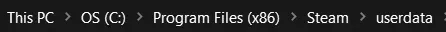 第二步:将所有文件整合在一起 现在,前往你存放Steam的文件位置 以我为例,路径是: 此电脑 > 系统盘(C:) > Program Files (x86) > Steam > userdata