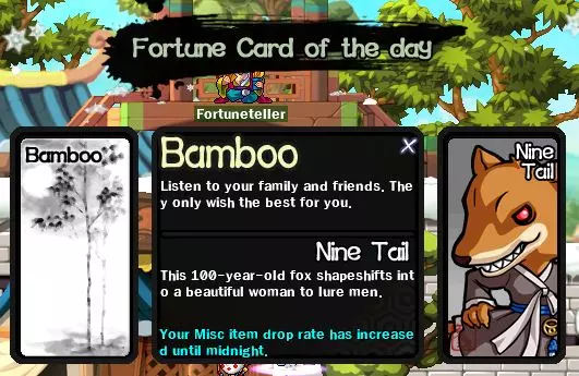 2. 拜访 fortune teller 登录后首先要做的就是拜访 fortune teller,以获取各种加成(物品掉落率、经验值等提升),效果持续到午夜(GMT+8)。每天只能拜访一次 fortune teller。