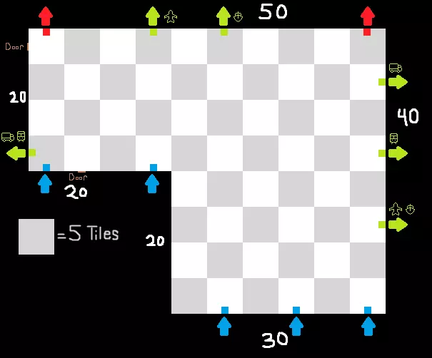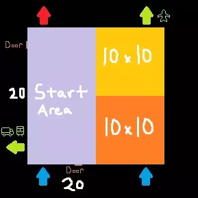 《包裹模拟器》极致优化指南 仓库地图 为了设定一些基本规则,本指南将使用“单位”来衡量地图,其中1单位等于单个传送带部件所占据的空间(也等于门的宽度)。 起始区域宽10单位,长20单位。快速判断距离的方法是通过墙上的嵌板,每个嵌板宽5单位。